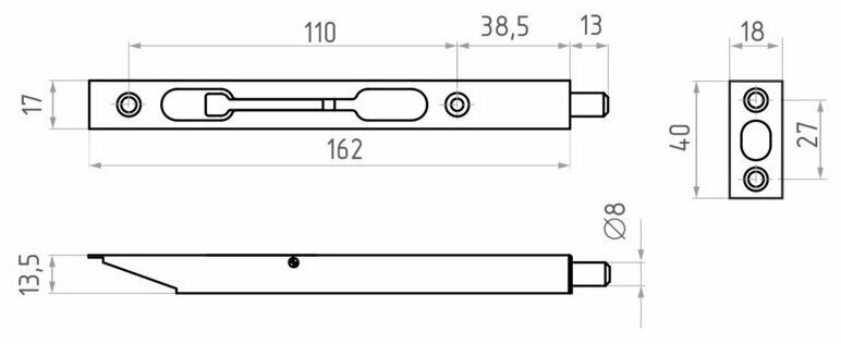 Ригель дверной (шпингалет, торцевой упор-задвижка) Loid 160 мм SB Матовое золото