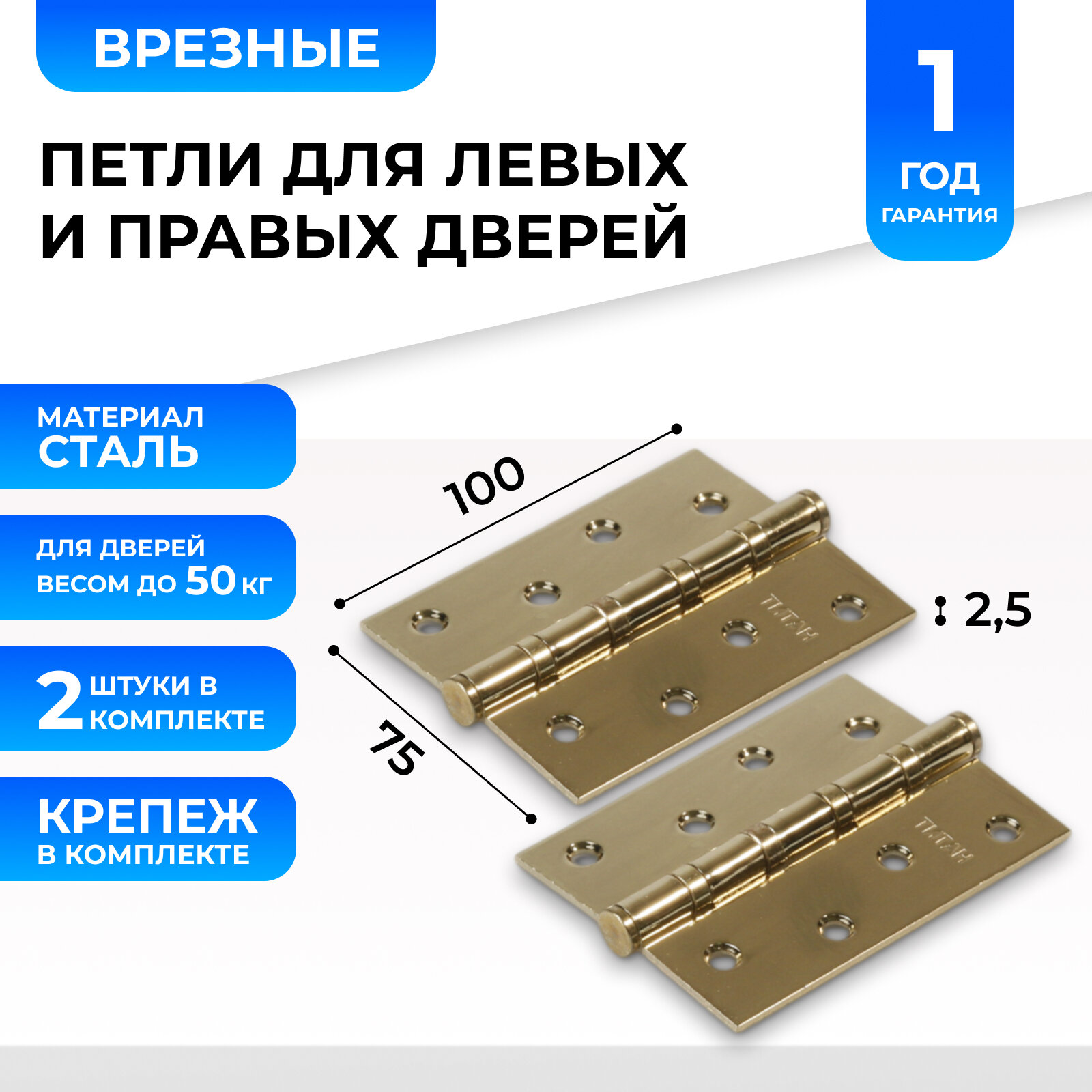 Купить Дверная петля универсальная врезная (2 шт) Титан 100х70х2.5 мм PB Золото