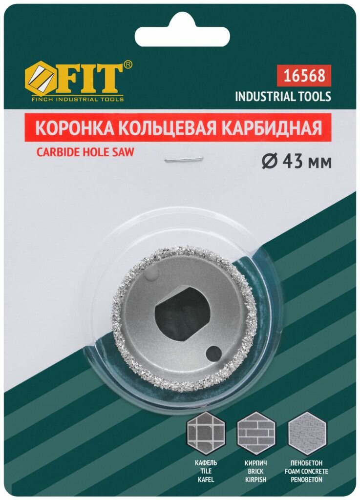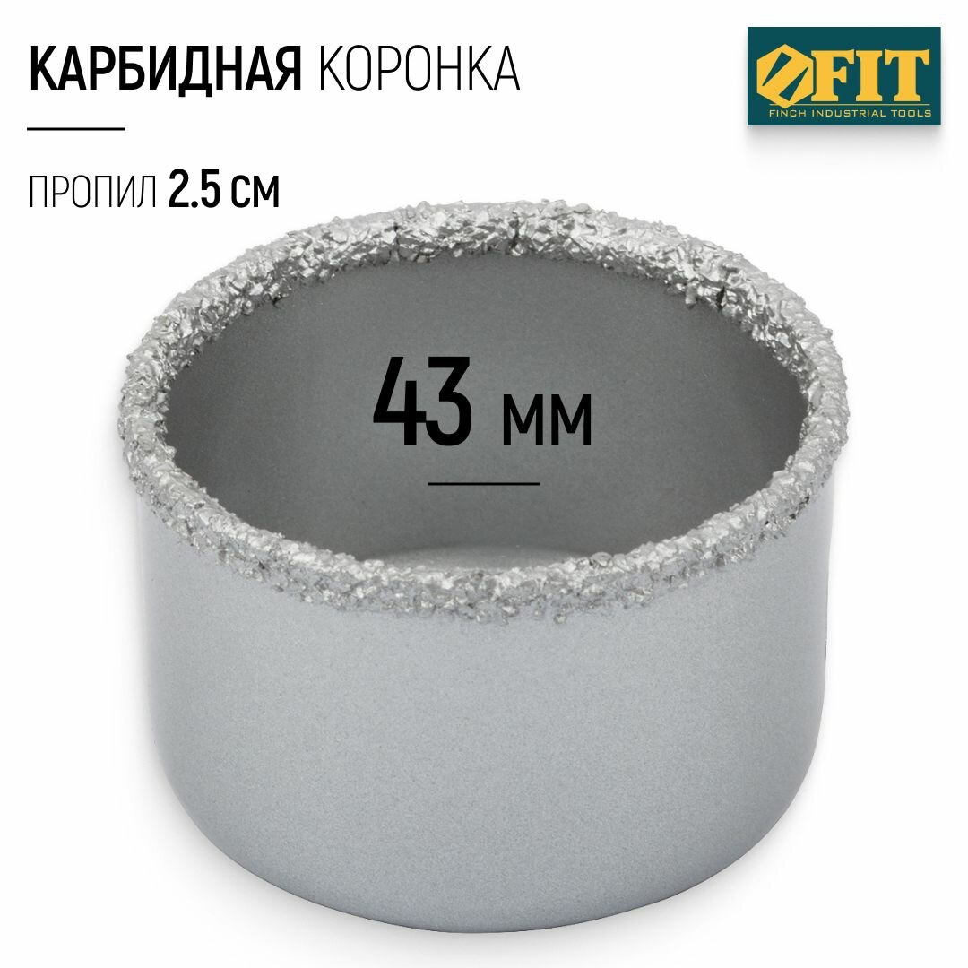 Коронка кольцевая по кафелю карбидная, глубина пропила 25 мм, 43 мм FIT 16568