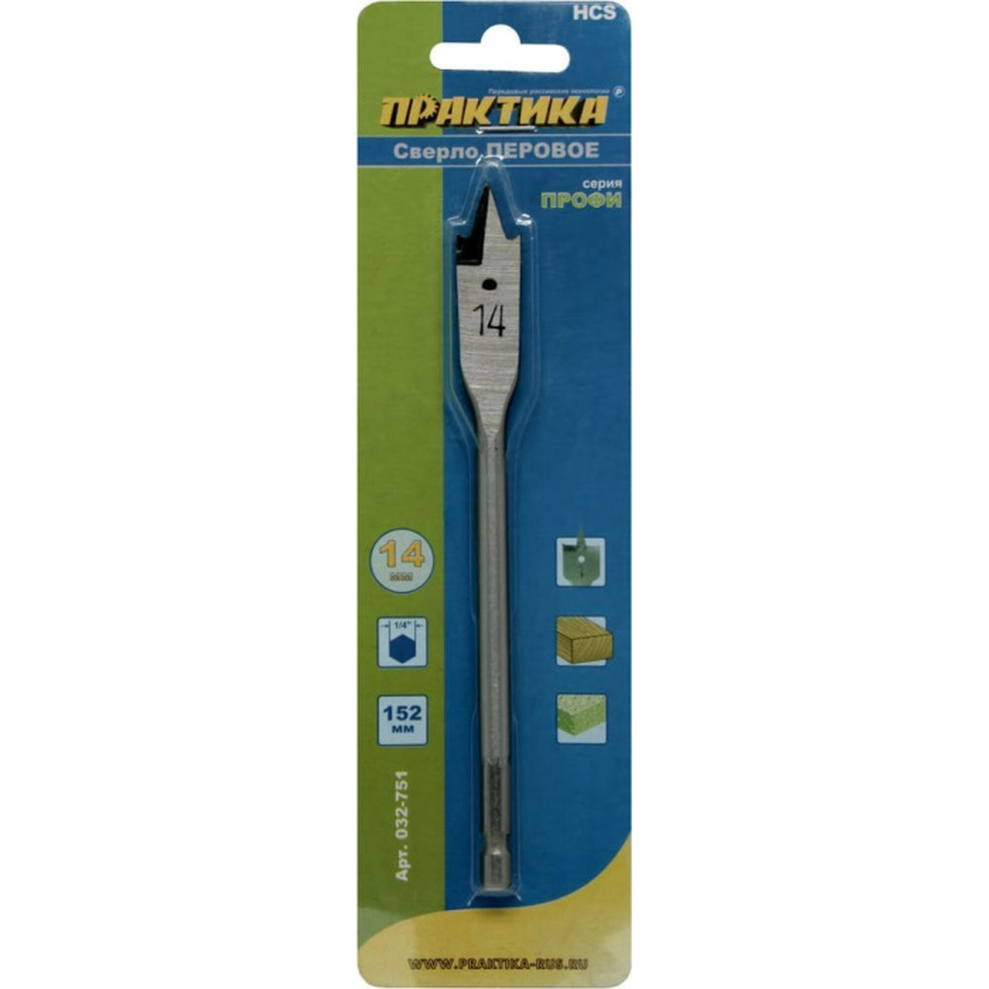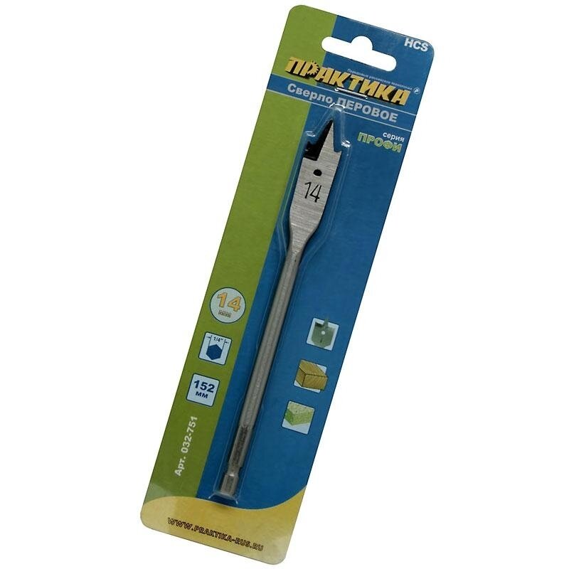 Сверло по дереву перовое ПРАКТИКА 14 х 152 мм (1шт.), шестигранник