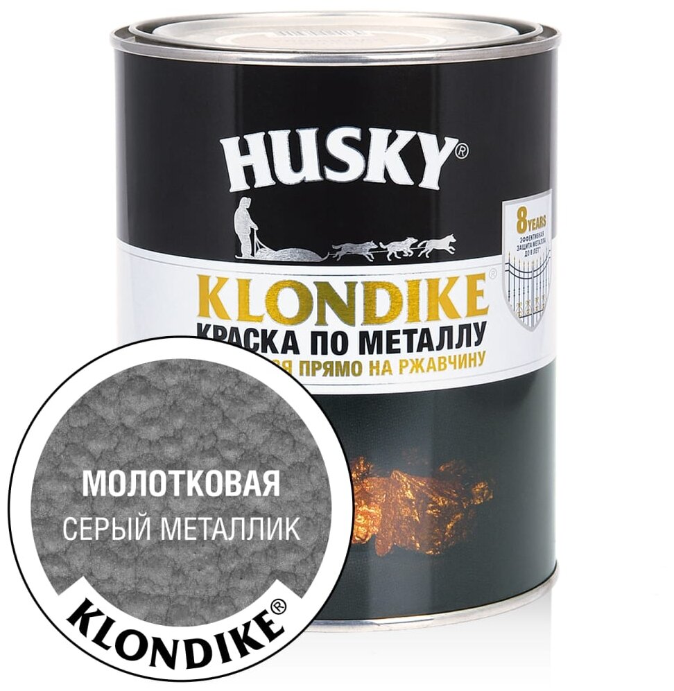 Краска по металлу с молотковым эффектом HUSKY-KLONDIKE серый металлик 0,9 л