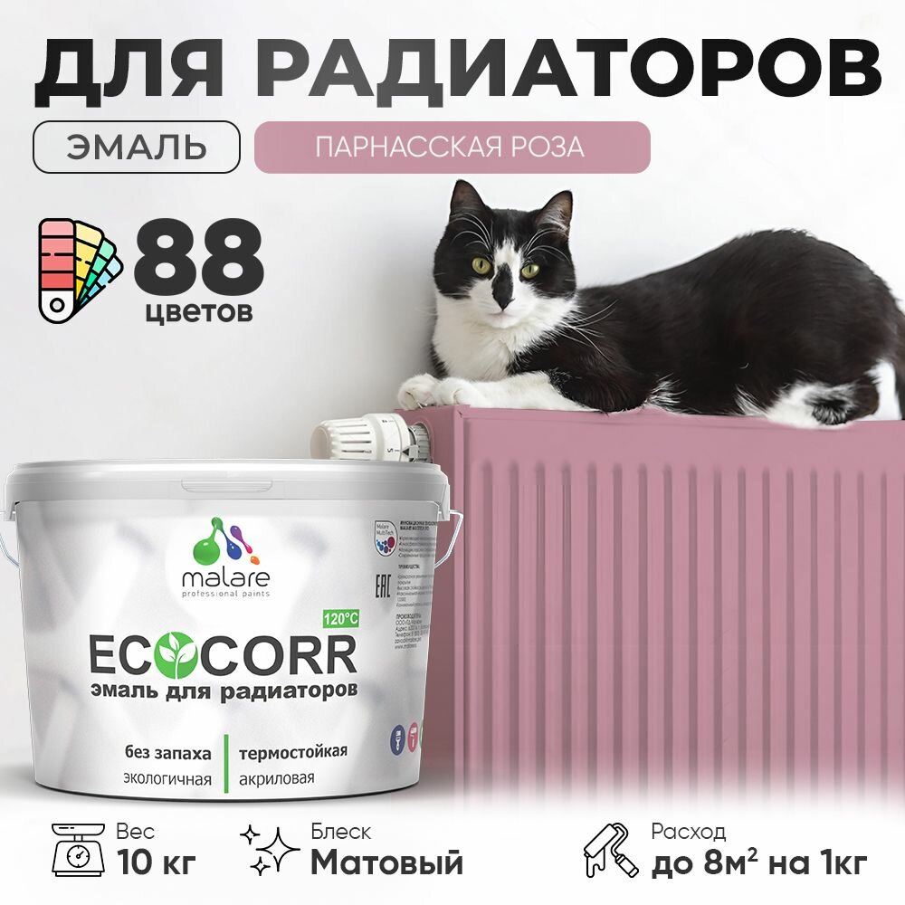 Купить Эмаль Malare EcoCorr для труб и радиаторов отопления, для батарей, водная акриловая быстросохнущая без запаха матовая, парнасская роза, 10 кг