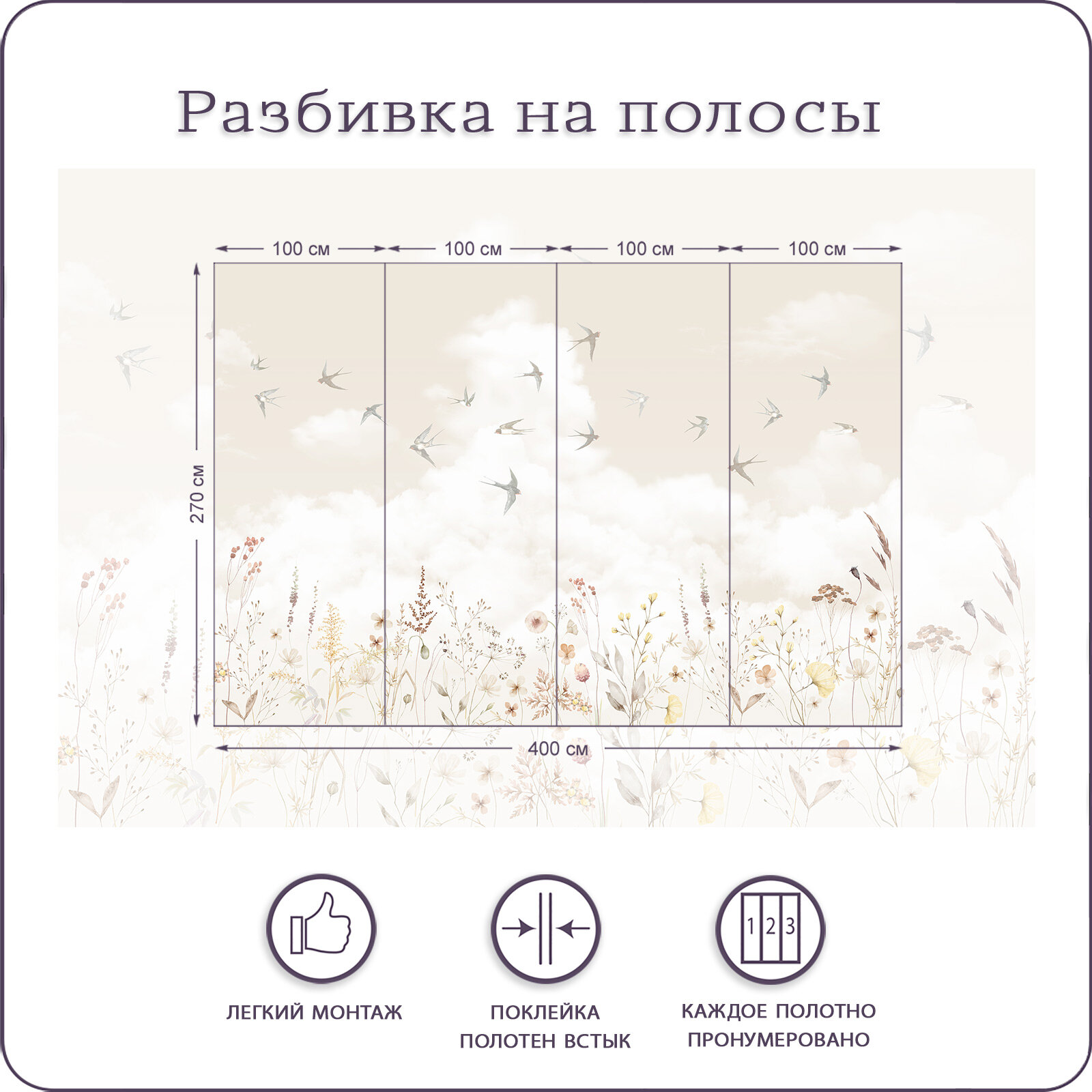 Купить Фотообои на стену флизелиновые 3d Растения Цветы Небо Птицы 400х270 см Bartonwall N163-B