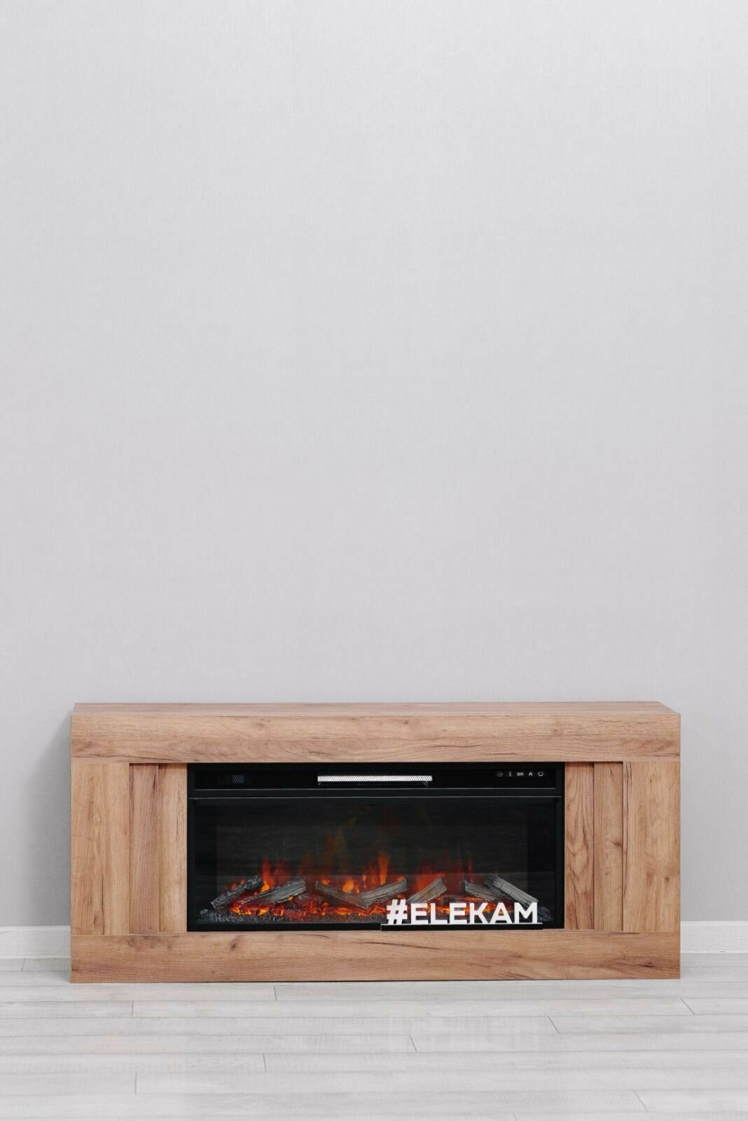 Камин электрический напольный ELEKAM Lindos 38 с очагом и порталом, с пультом, обогревом и имитацией огня (Электрокамин)