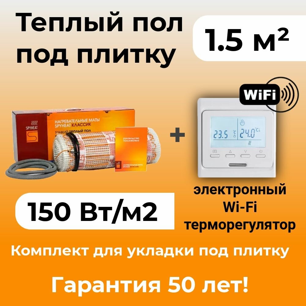 1,5 м2 Теплый пол (электрический) под плитку нагревательный мат SpyHeat SHMD-8-225 Вт с программируемым Wi-Fi терморегулятором