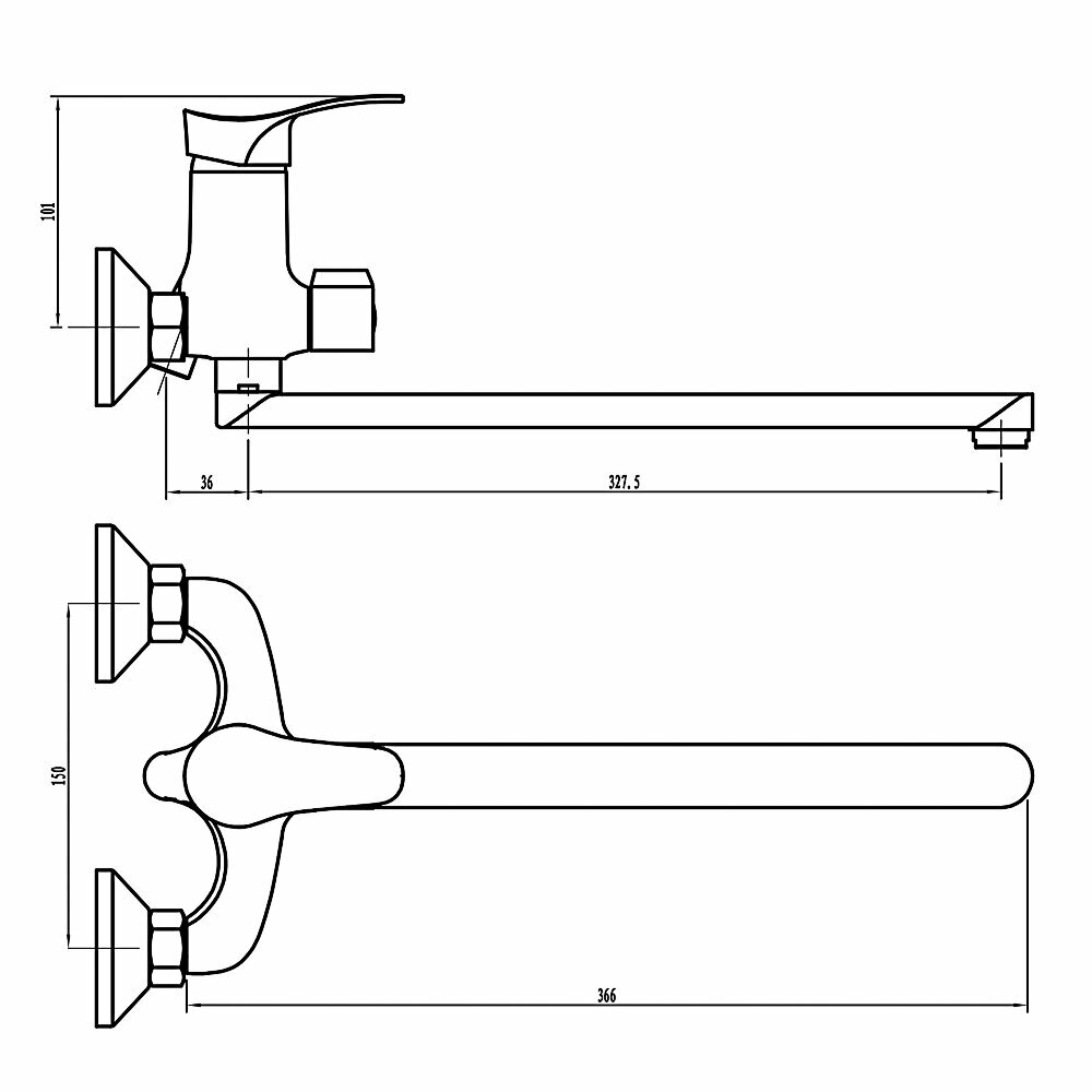 Смеситель для ванны с душем СоюзКран прямой излив 35см картридж 35мм