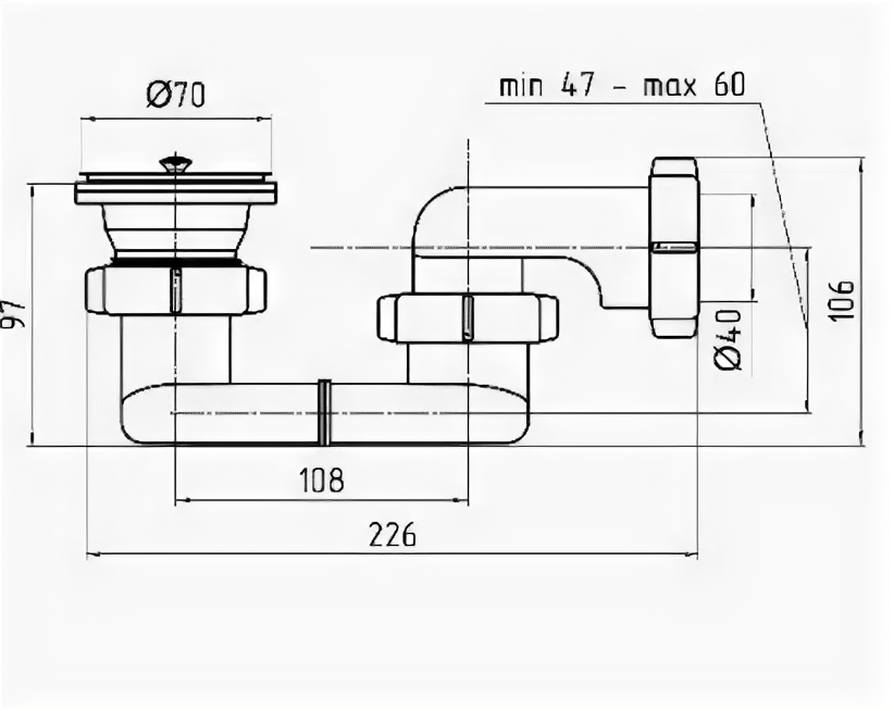 | Диаметр выпуска | 1 1/2" / 40 мм / 50 мм / 60 мм / 90 мм |