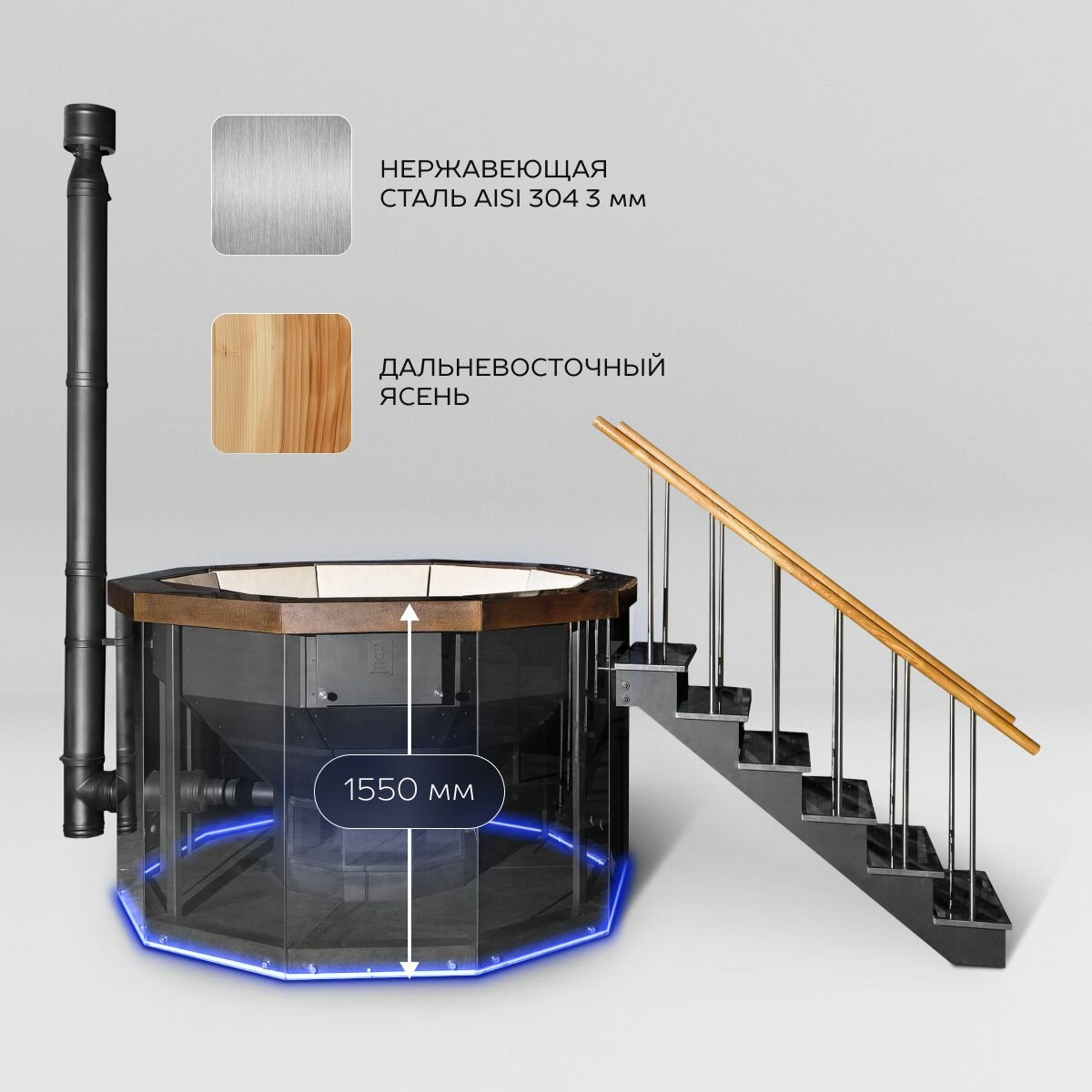 Банный чан Горыныч для 2х-4х человек стандартная лестница купель 1500 литров диаметр 170 см