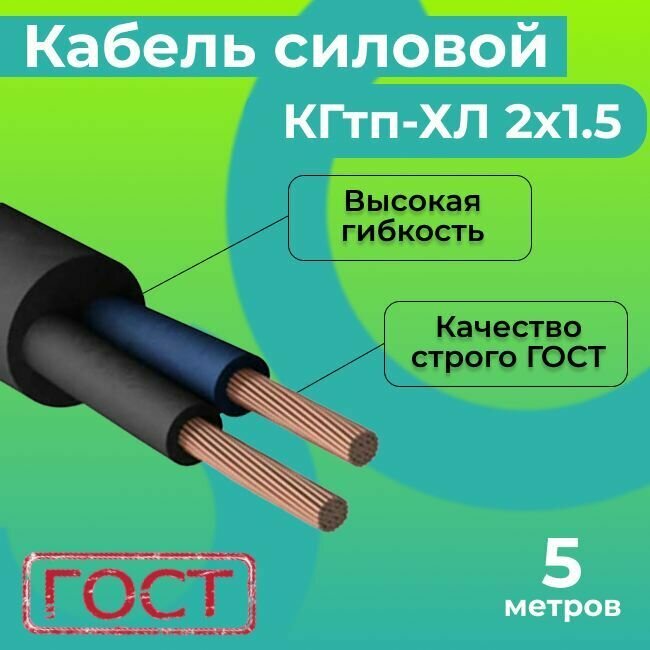 Кабель силовой гибкий КГтп-ХЛ 2х1,5 ГОСТ 31945-2012 5 м.