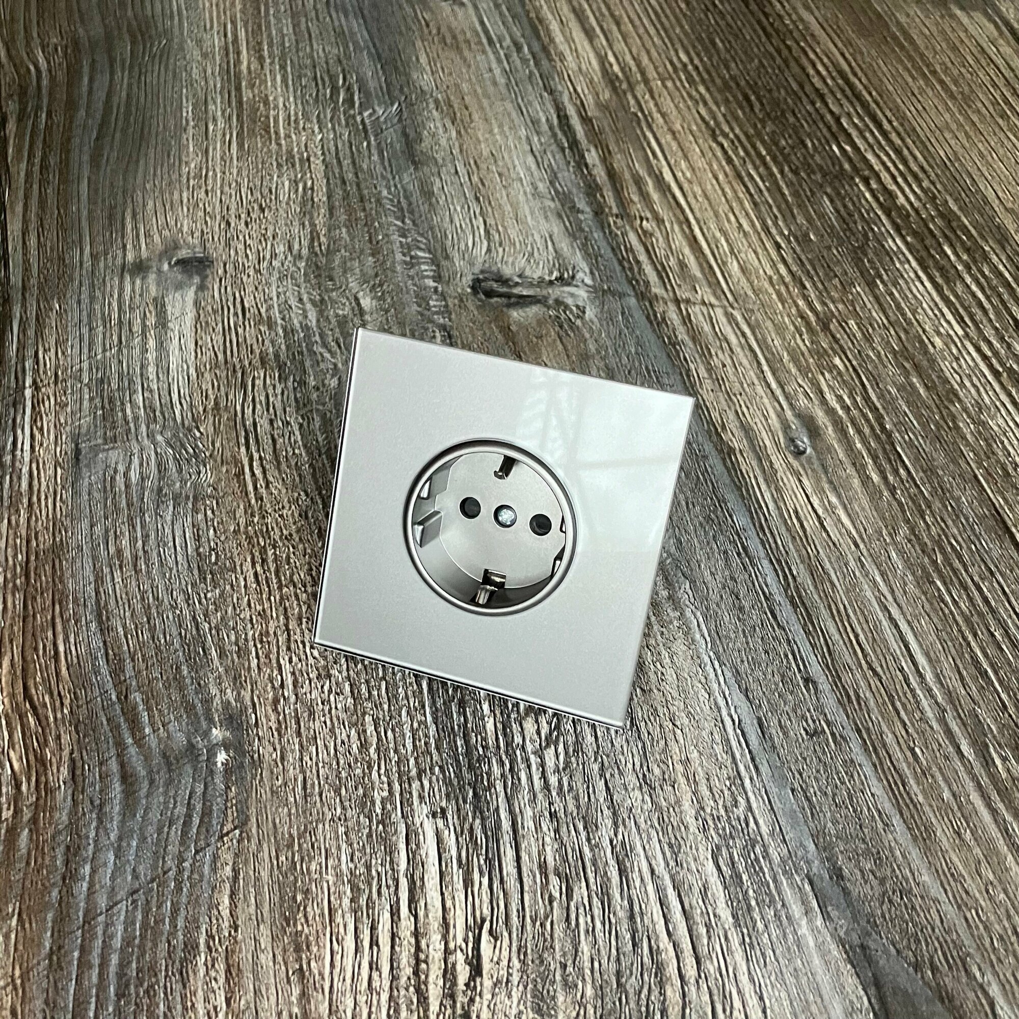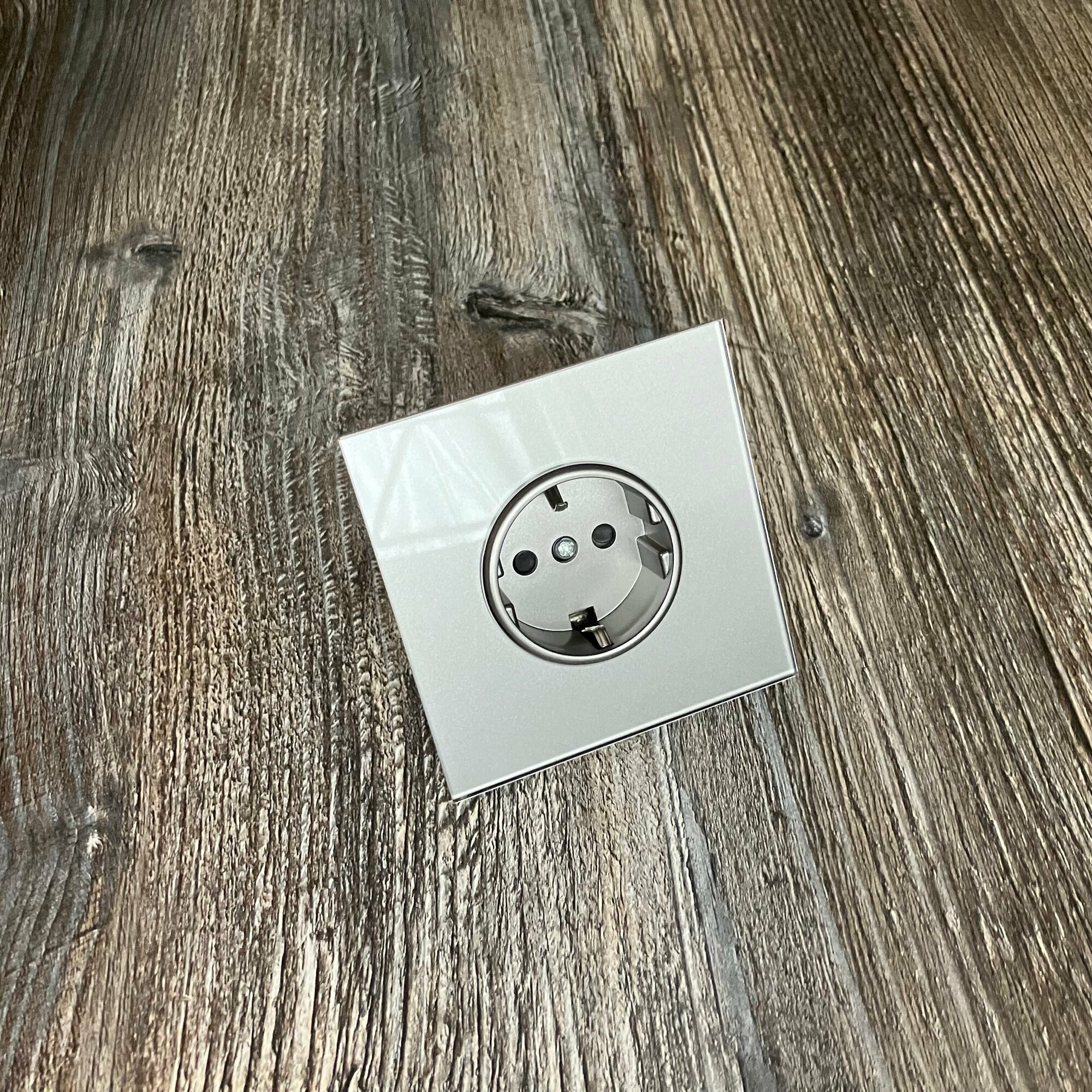 Купить Розетка одинарная 220в 16А рамка из закаленного стекла, Серый. F8