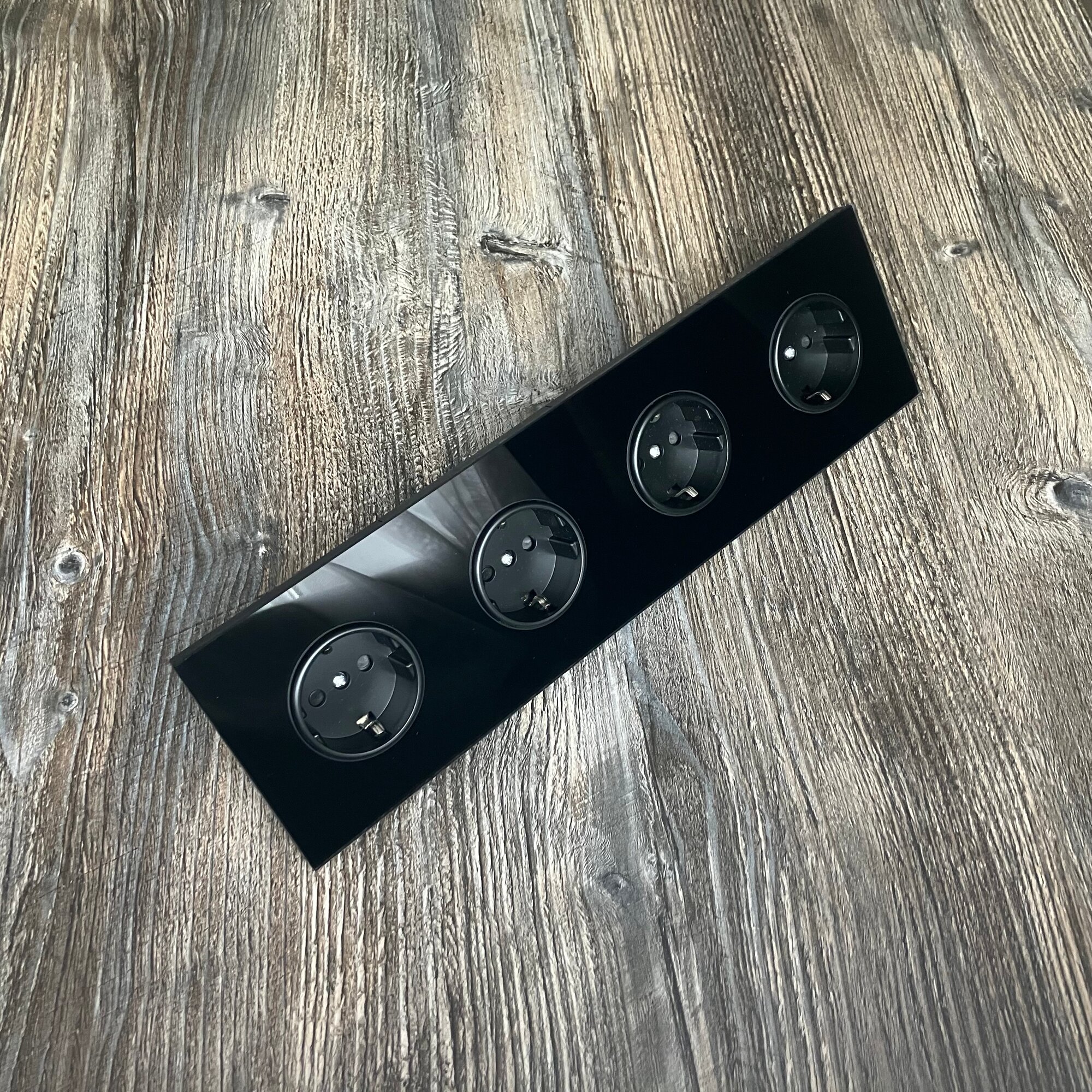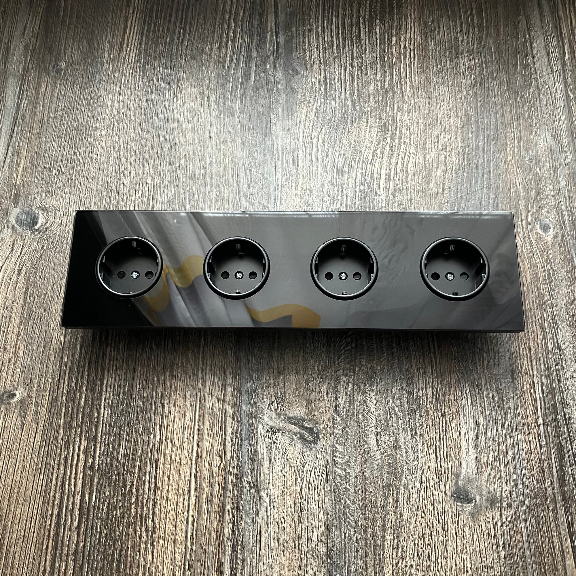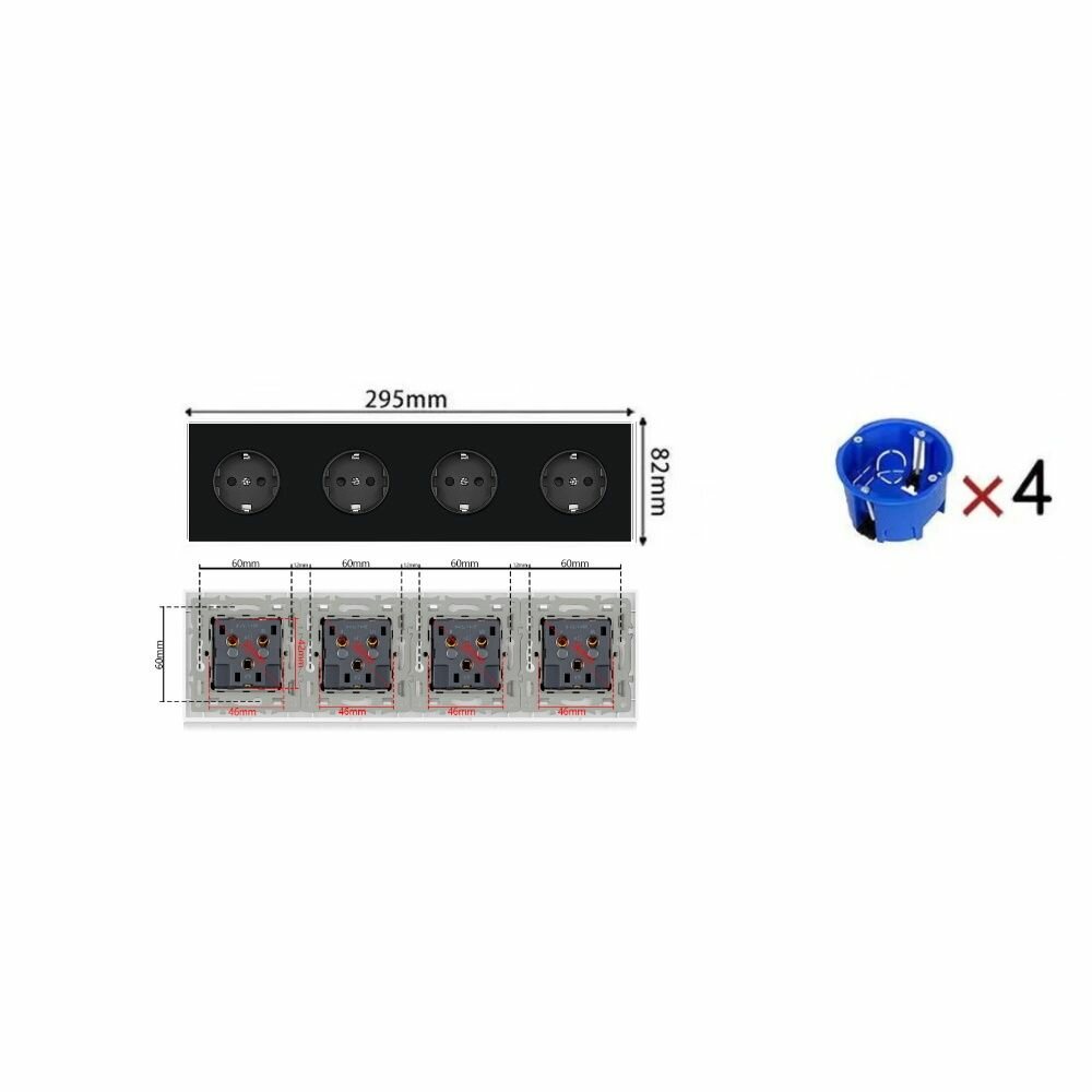 Розетка электрическая 4 поста 16А, рамка 295*82*8mm. рамка стекло сплошное, цвет чёрный. F8