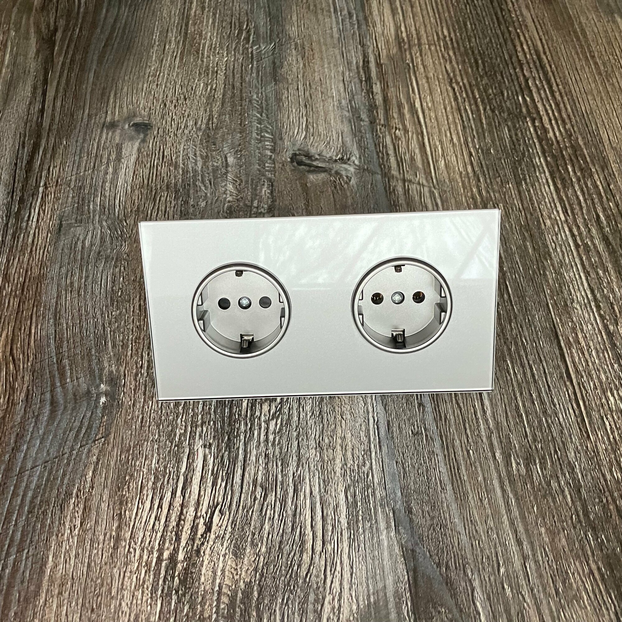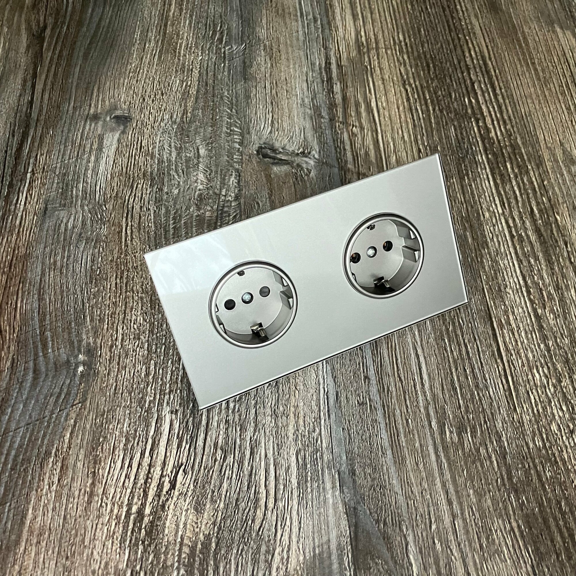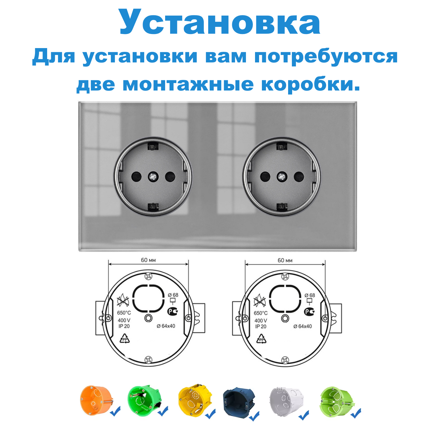 СохранитьРозетка двойная 2 поста 16А 250В, со шторками, рамка закаленное стекло, Серый. F8 интересное: