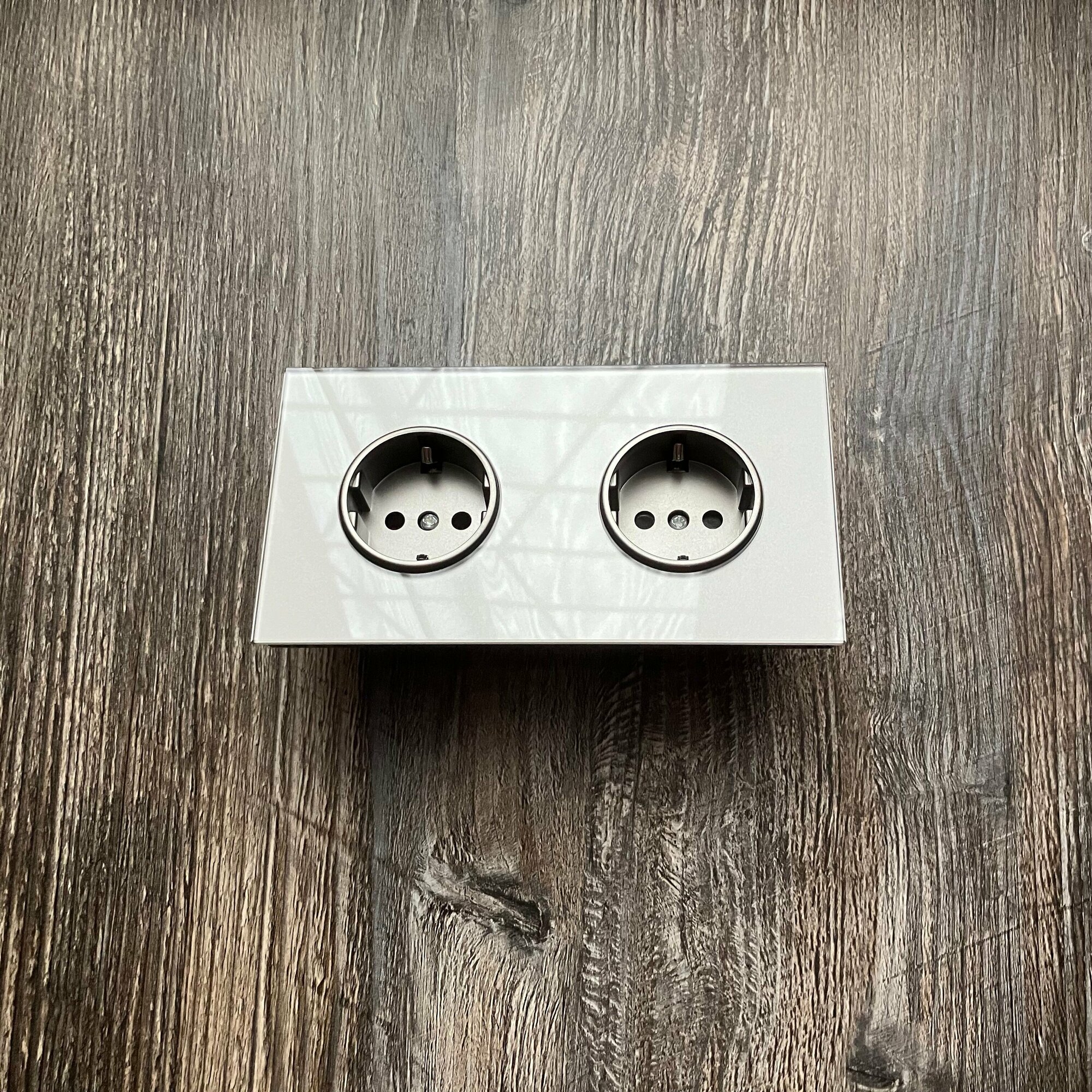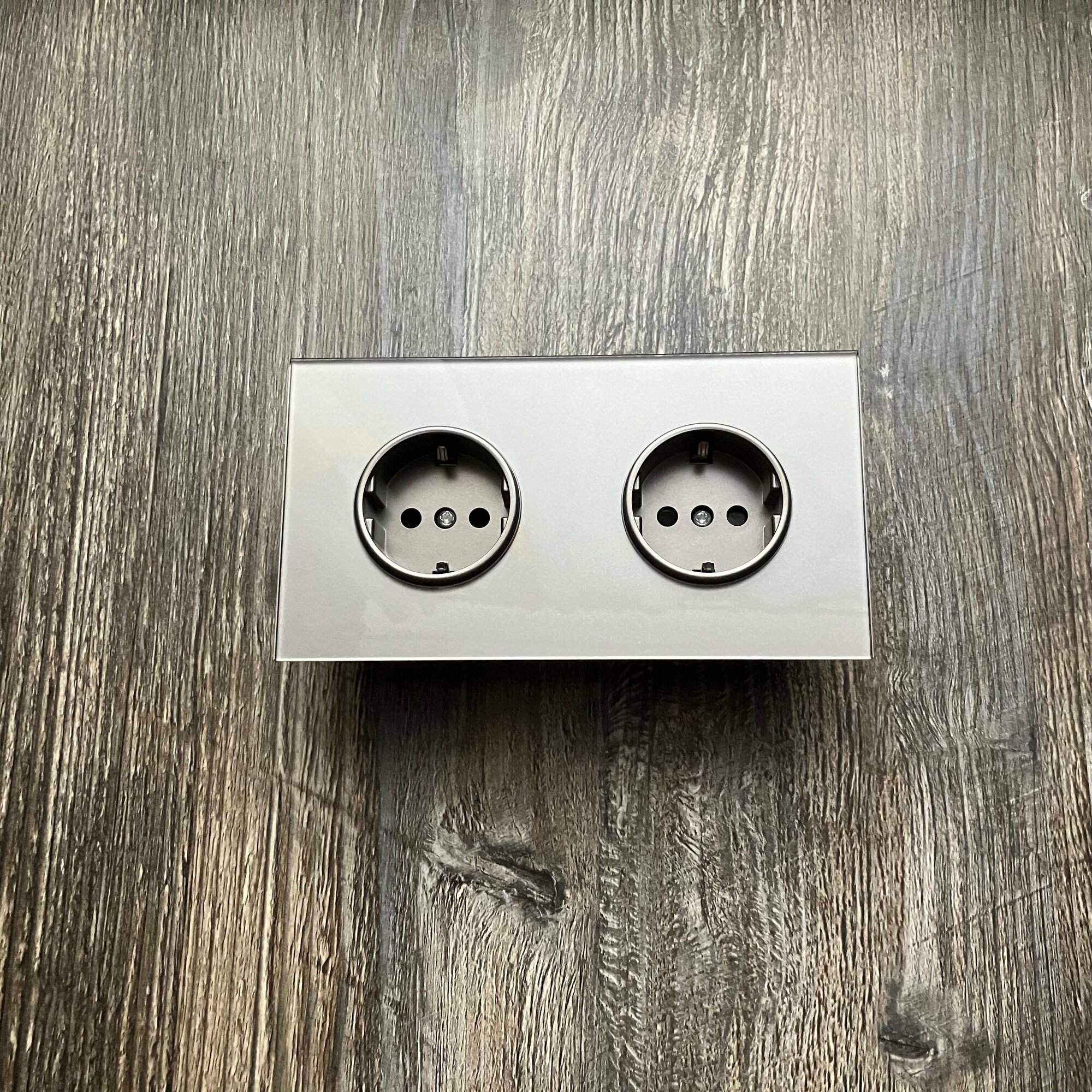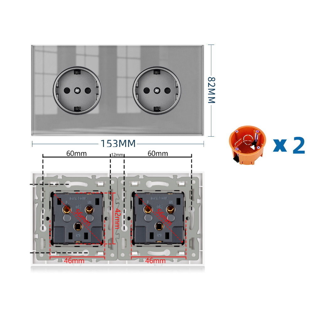 СохранитьРозетка двойная 2 поста 16А 250В, со шторками, рамка закаленное стекло, Серый. F8 интересное: