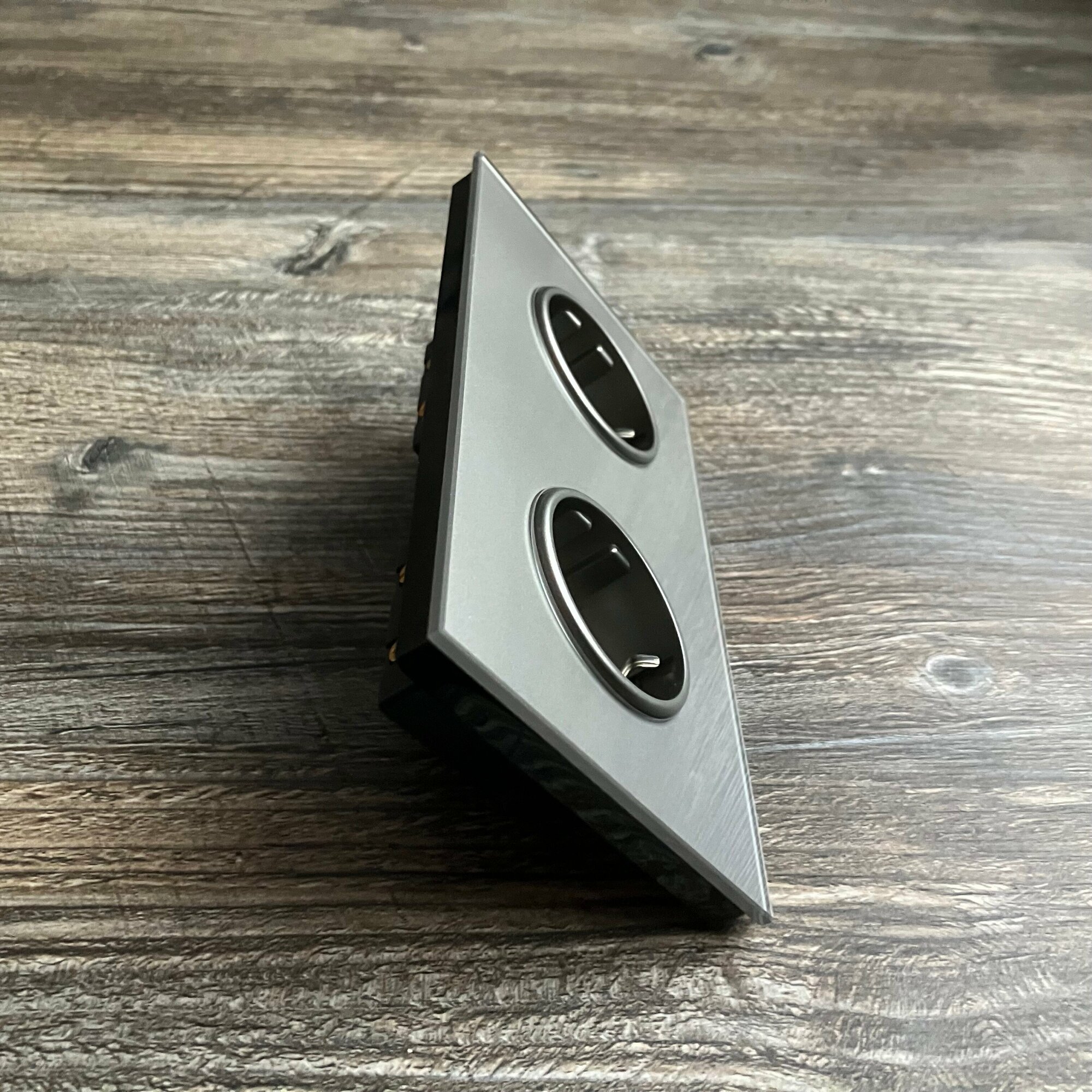 Купить Розетка двойная 2 поста 16А 250В, со шторками, рамка закаленное стекло, Серый. F8