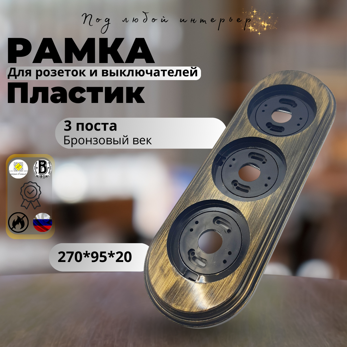 Рамка 3-м ретро пластик. бронз. Bironi BF1-630-25