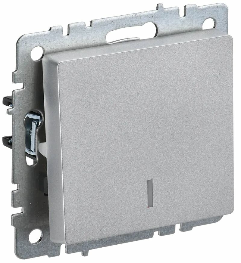 Выключатель встраиваемый одноклавишный с подсветкой IEK BRITE BR-V10-1-10-K47 ВС10-1-1-БрА алюминий