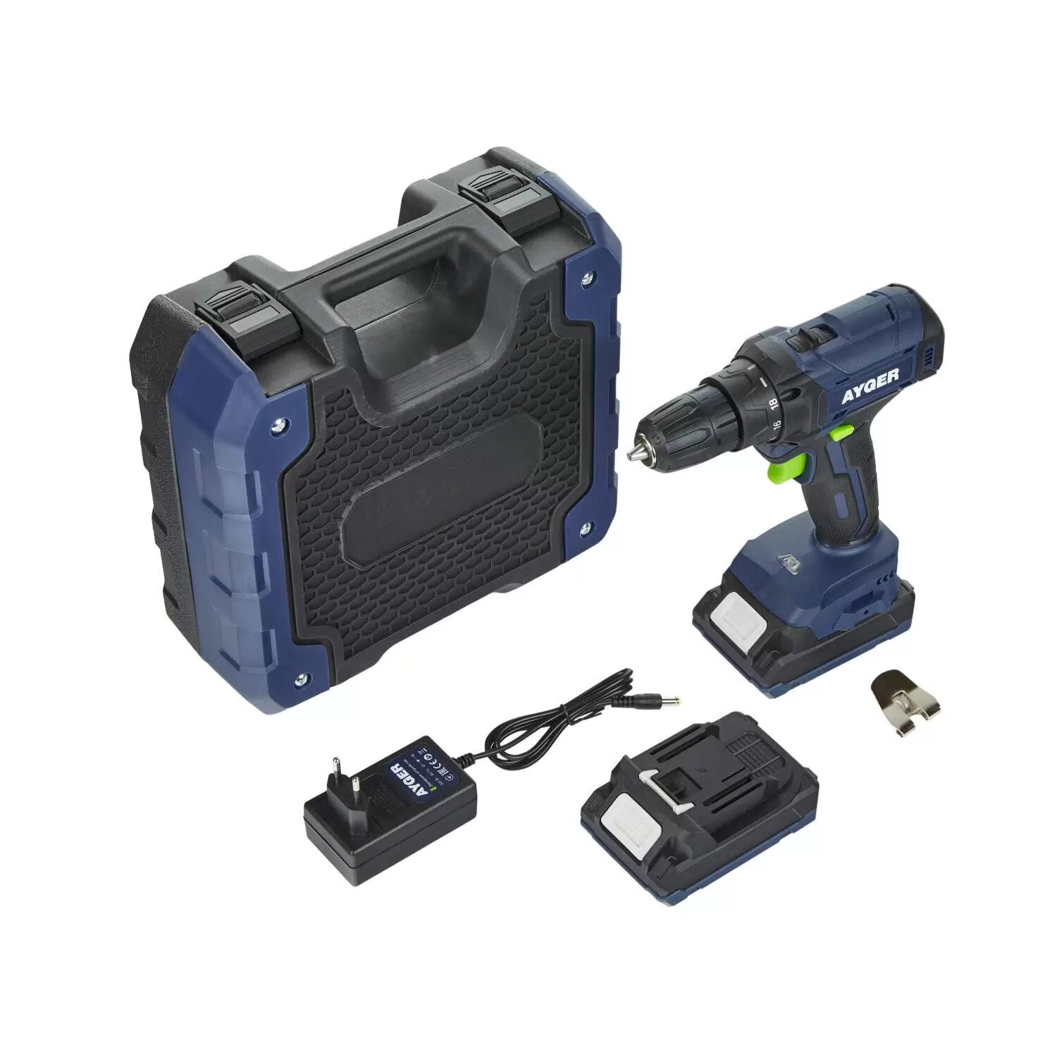 Аккумуляторная дрель-шуруповерт AYGER, 18 В, с 2 АКБ 2 Ач и ЗУ, 1350 об/мин, в кейсе, AP18M