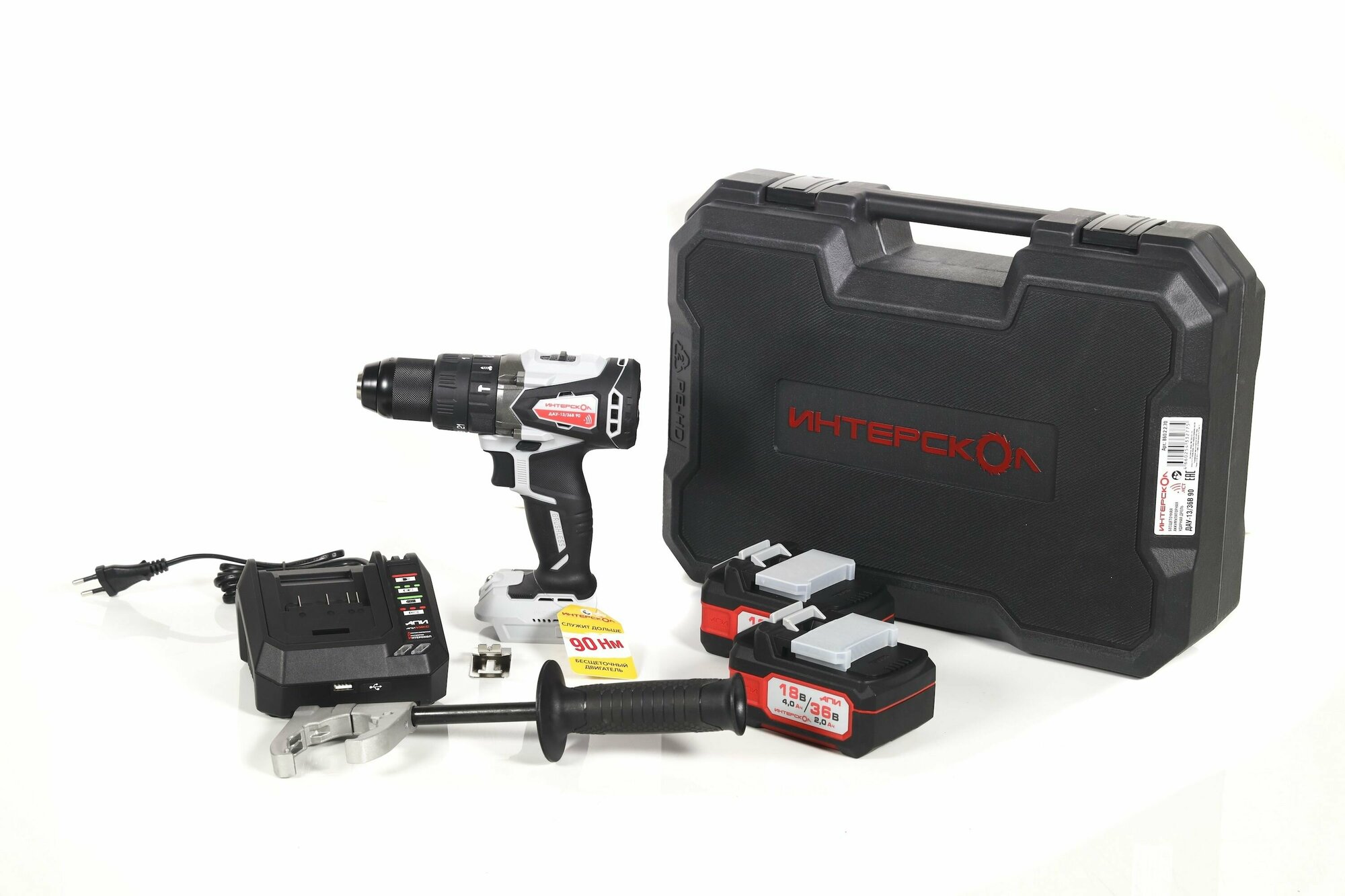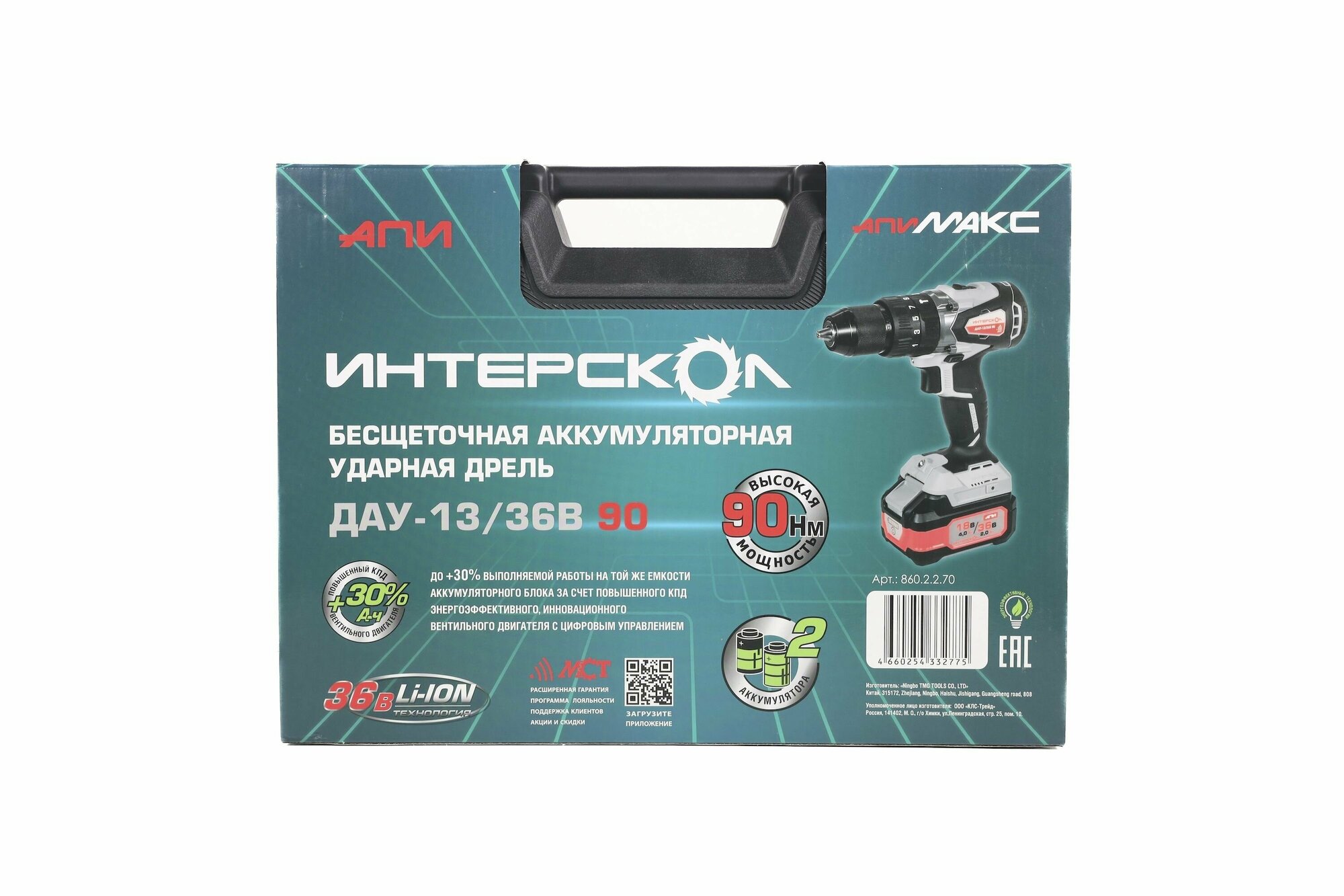 Ударная дрель-шуруповерт Интерскол ДАУ-13/36В 90, 2Ач, с двумя аккумуляторами [860.2.2.70] интересное: