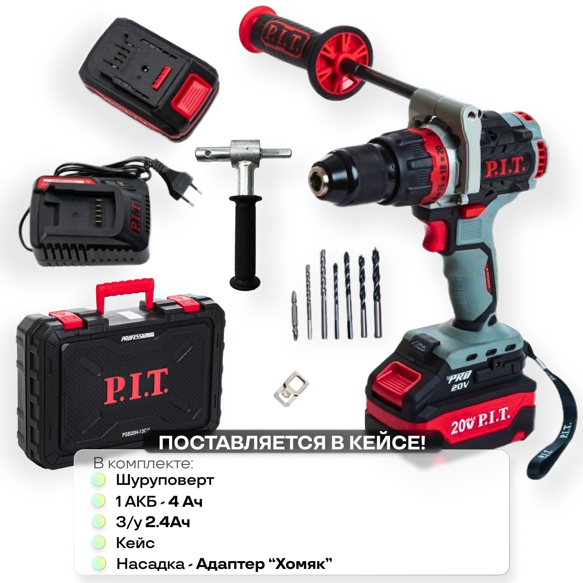 Шуруповерт аккумуляторный бесщеточный PSB20H-13C/1 P.I.T., кейс, З/У, АКБ 4Ач + доп. АКБ 4Ач