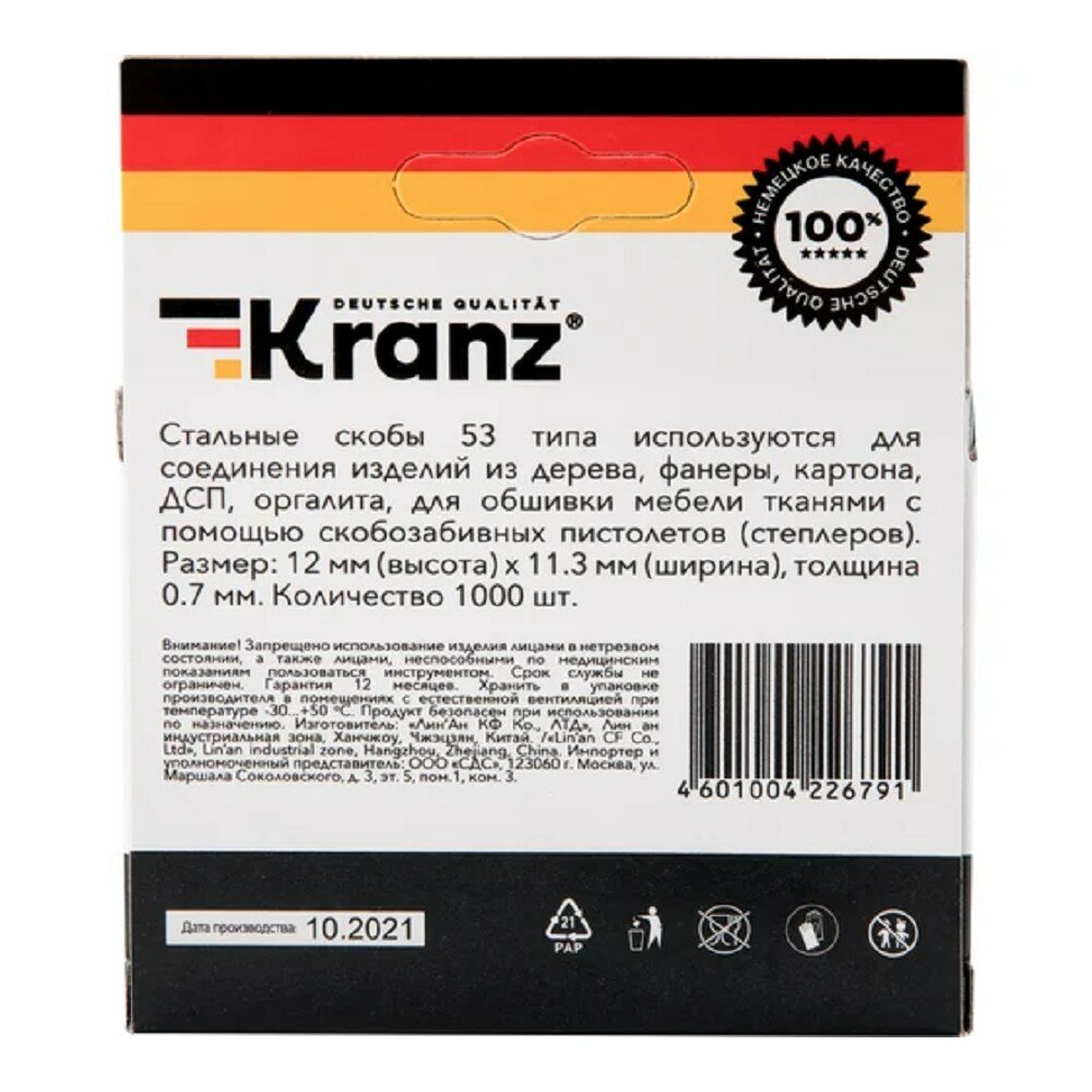 Скобы для строительного степлера KRANZ 1000 шт. 8 мм интересное: