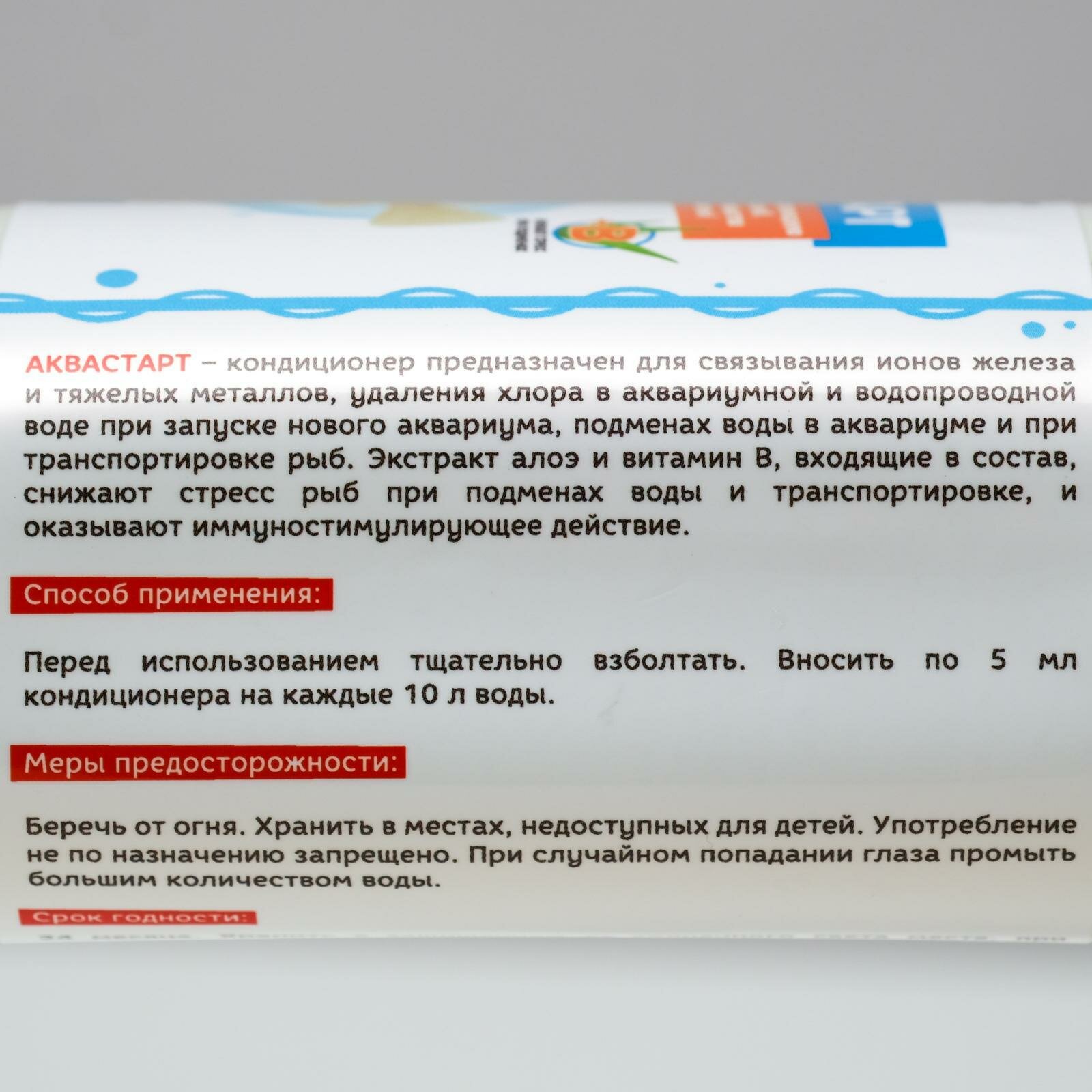 | Способ применения | Способ применения:Перед использованием тщательно взболтать. Вносить по 5 мл кондиционера на каждые 10 л воды. |