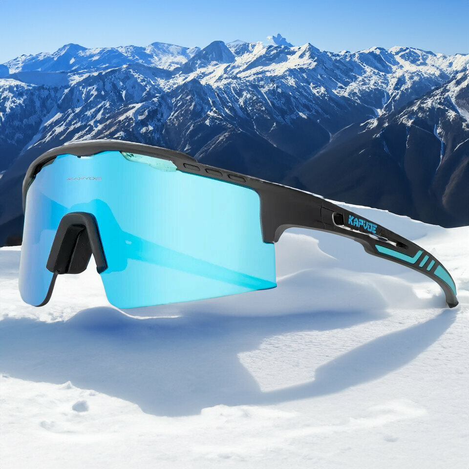 Очки спортивные солнцезащитные Kapvoe с защитой от UV400 для лыжников, сноубордистов, велосипедистов, бега, цвет синий cиней линзой