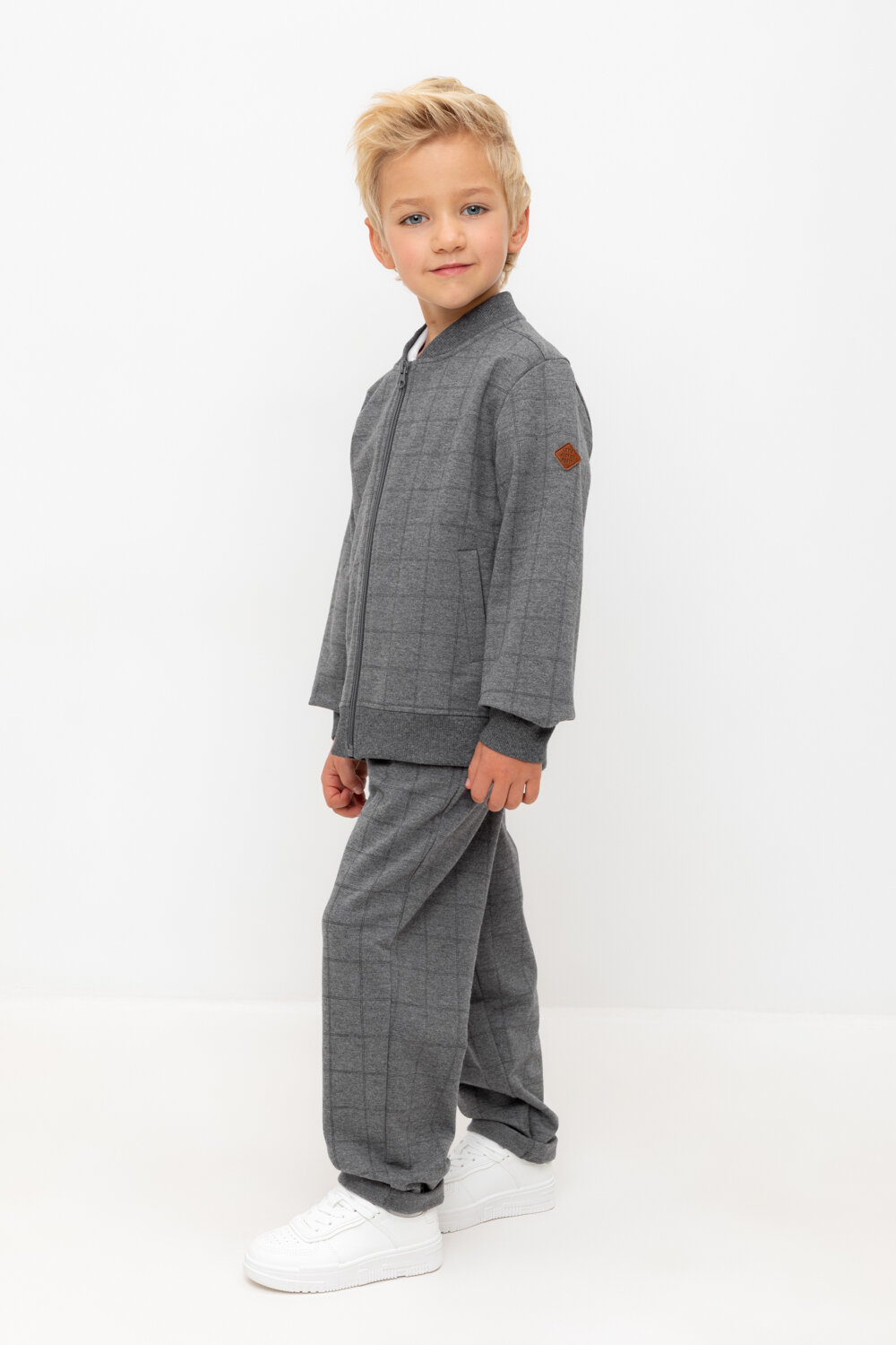 Брюки Crockid КР 400757/тем.серый меланж,клетка к518 р 64/128 для мальчика из футера