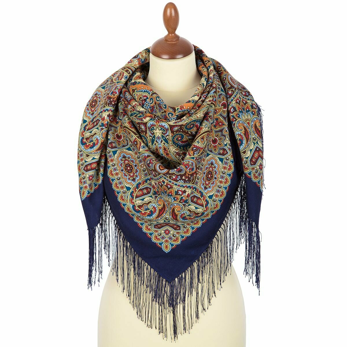 Платок павловопосадский шерстяной с шелковой бахромой, рисунок: 1805 вид: 1, 'Рождественский пряник', автор рисунка: Жукова Елена