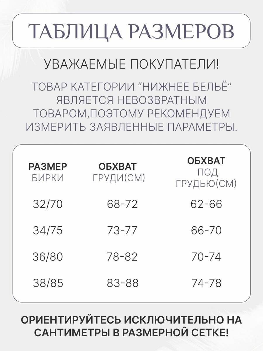 | Тип чашки | без косточек / кружевная / мягкая / формованная |