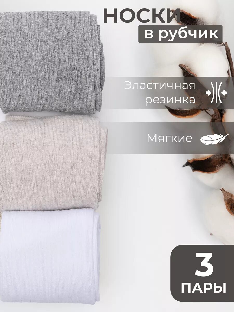 Носки женские в рубчик, набор 3 пары интересное: