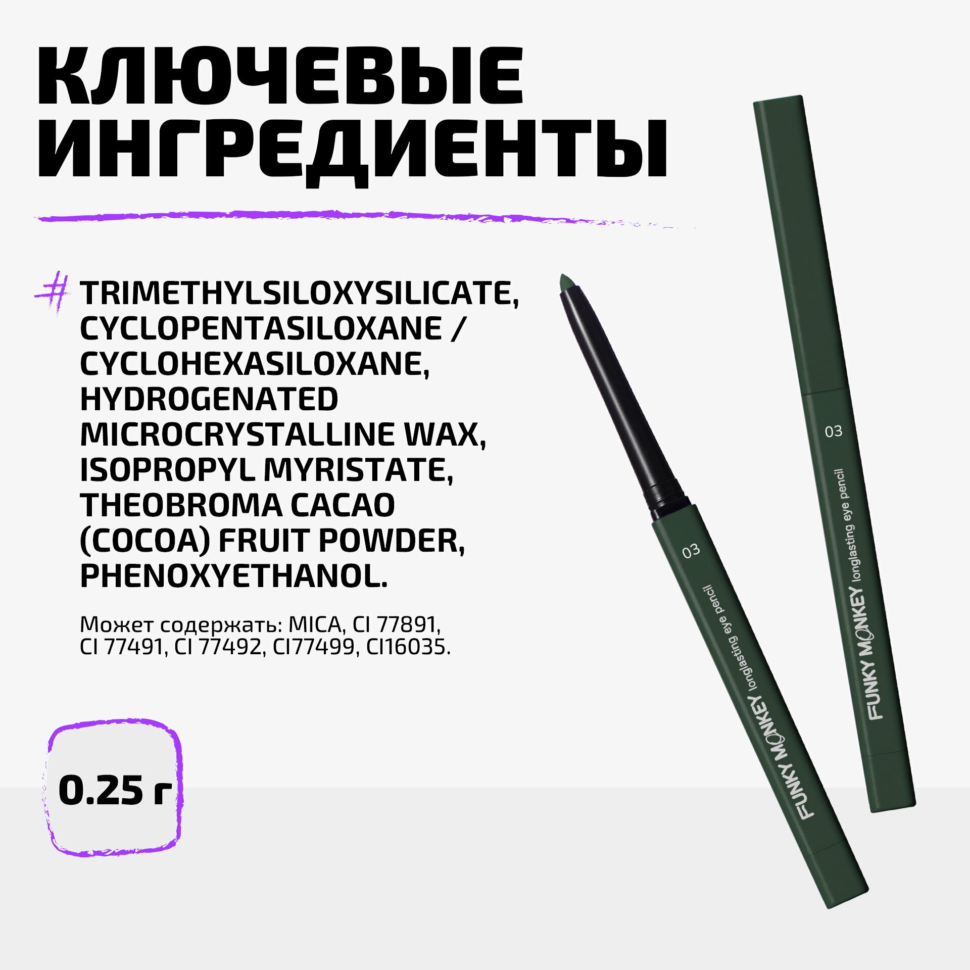FUNKY MONKEY Карандаш для глаз стойкий Longlasting eye pencil, 0,25 г, 03