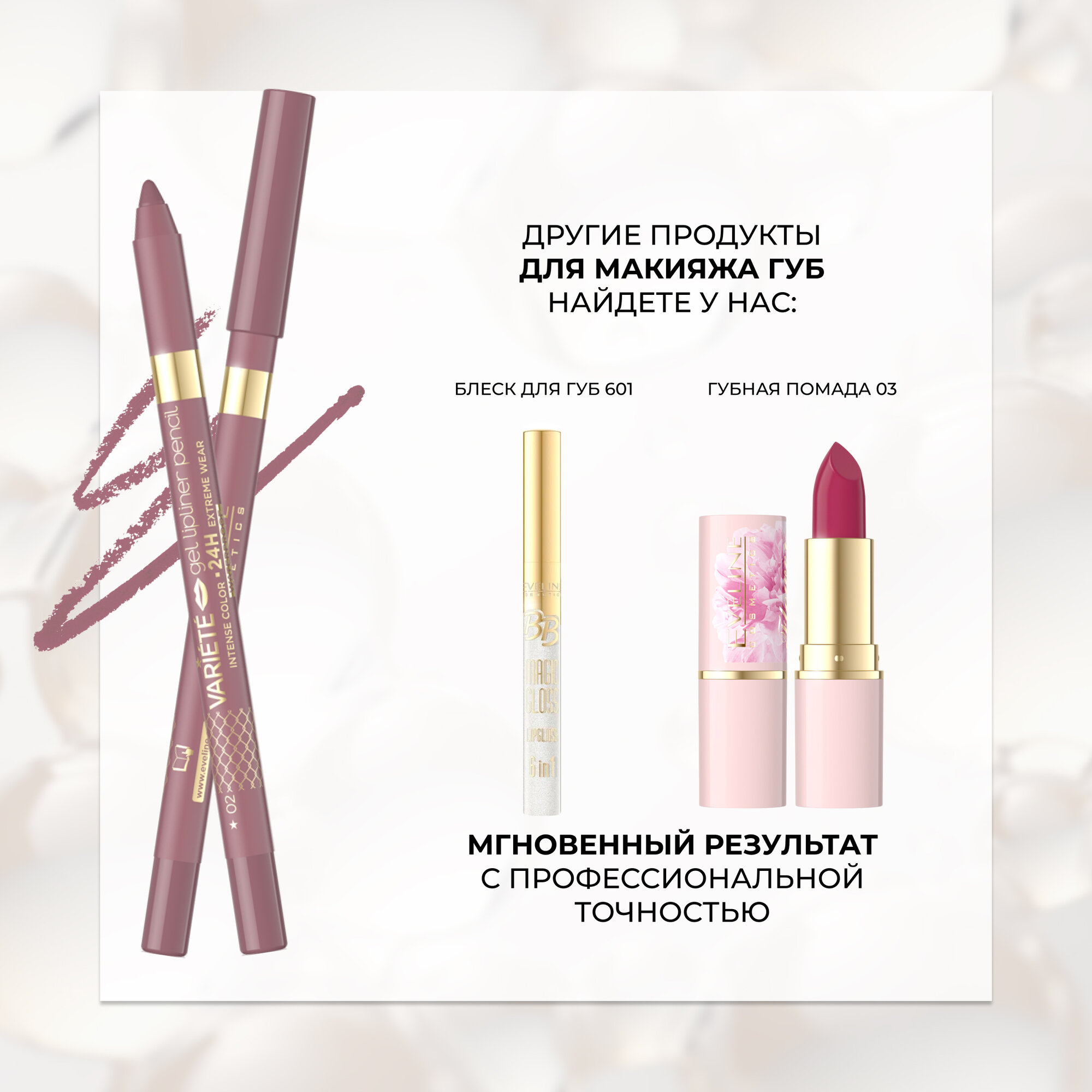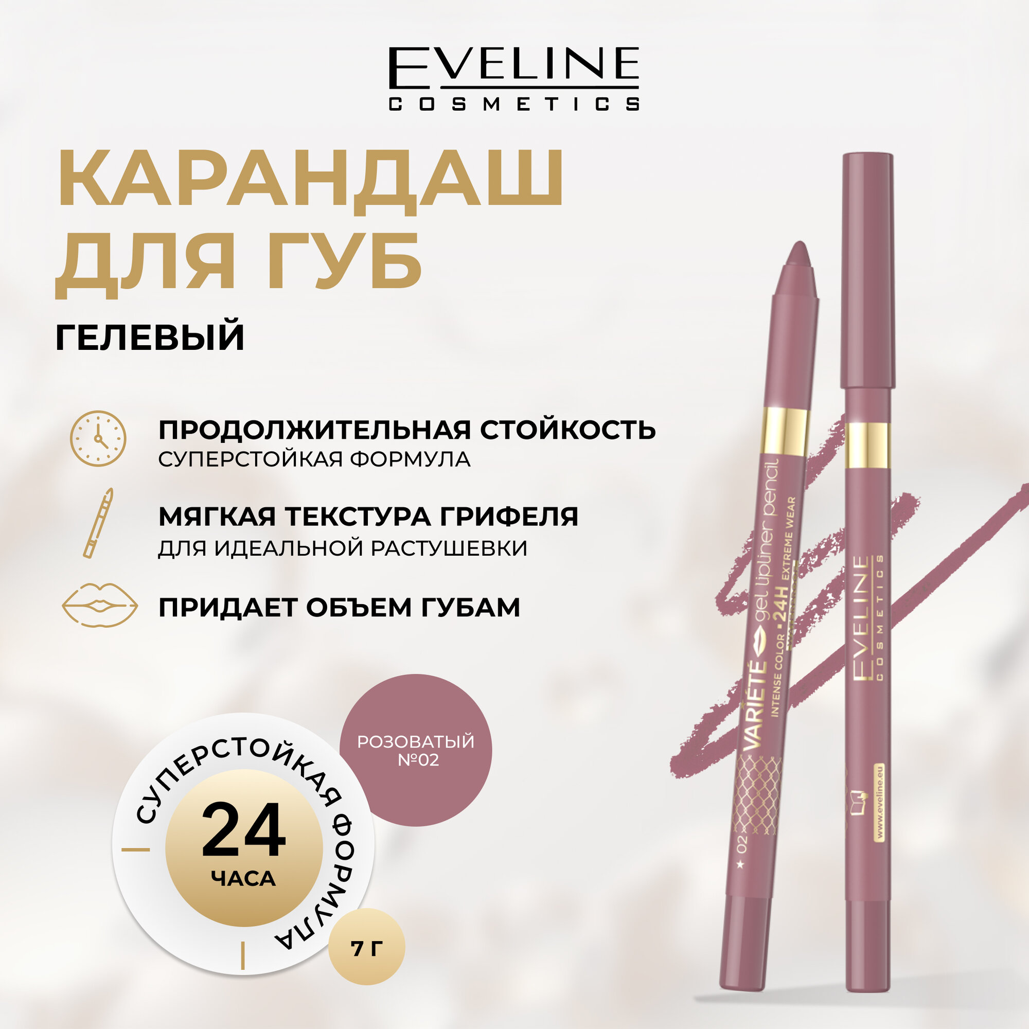 Карандаш для губ EVELINE VARIETE гелевый водостойкий и матовый тон №02 PINKISH интересное: