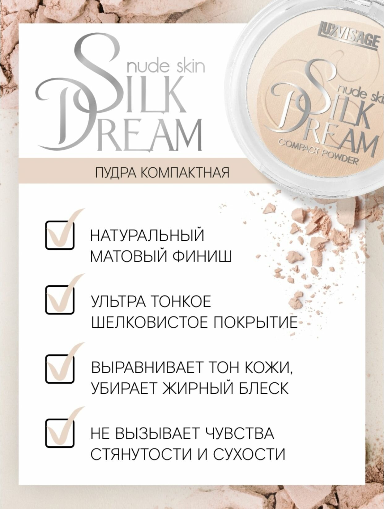 Купить LUXVISAGE Пудра компактная LUXVISAGE Silk Dream nude skin, 01 тон 4811329031196
