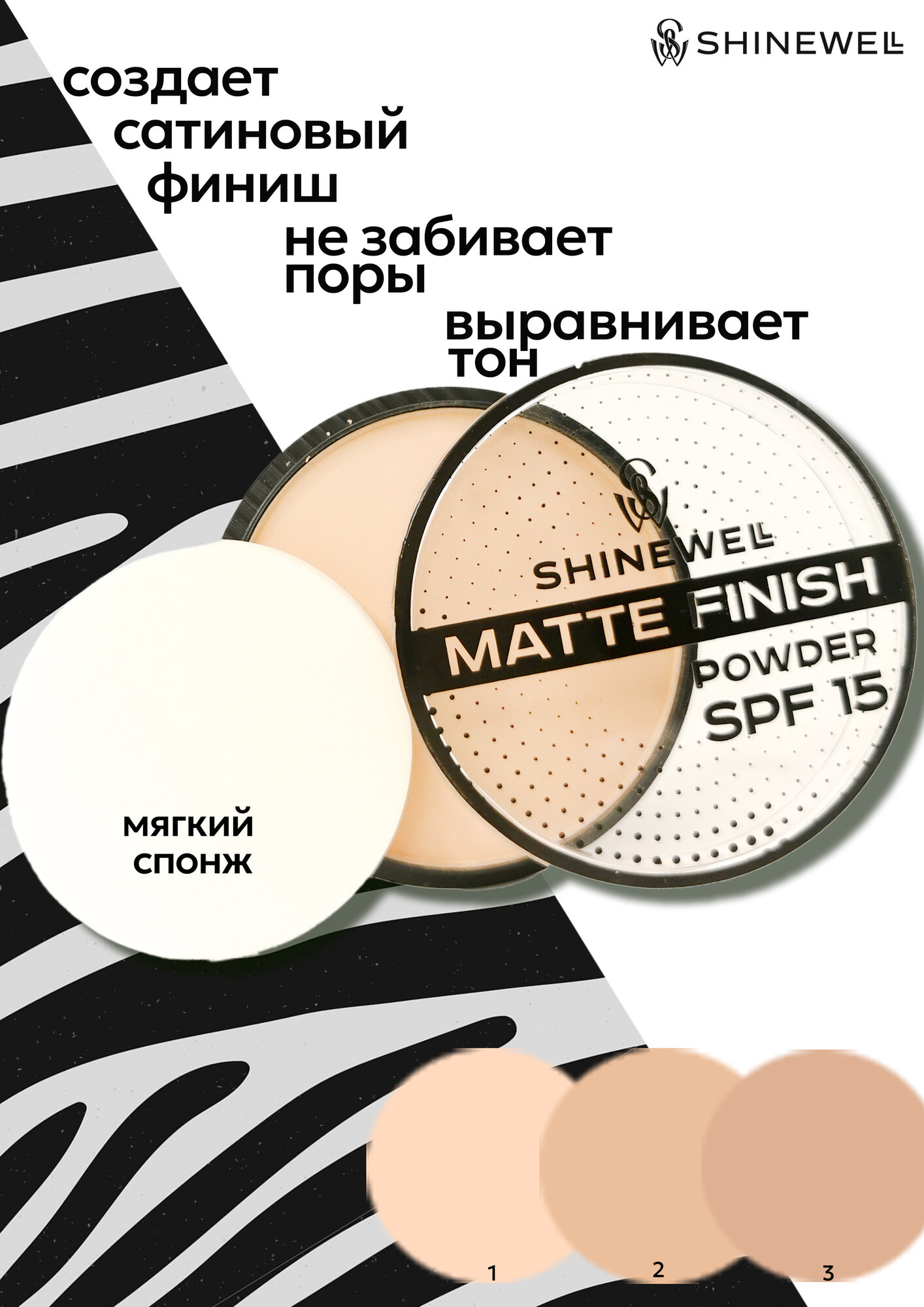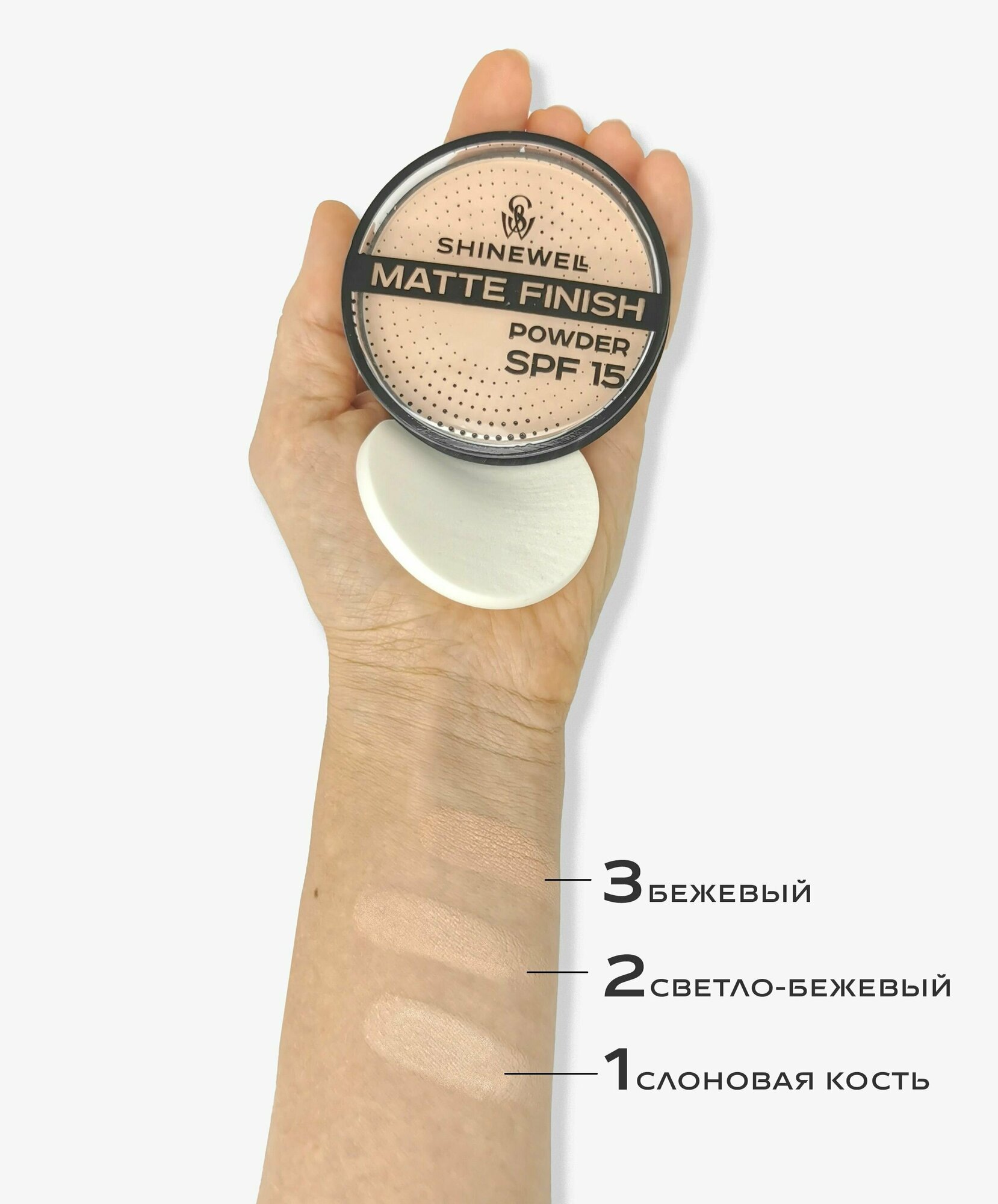 SHINEWELL Matte Finish Powder Матирующая пудра для лица SPF 15, бежевая интересное: