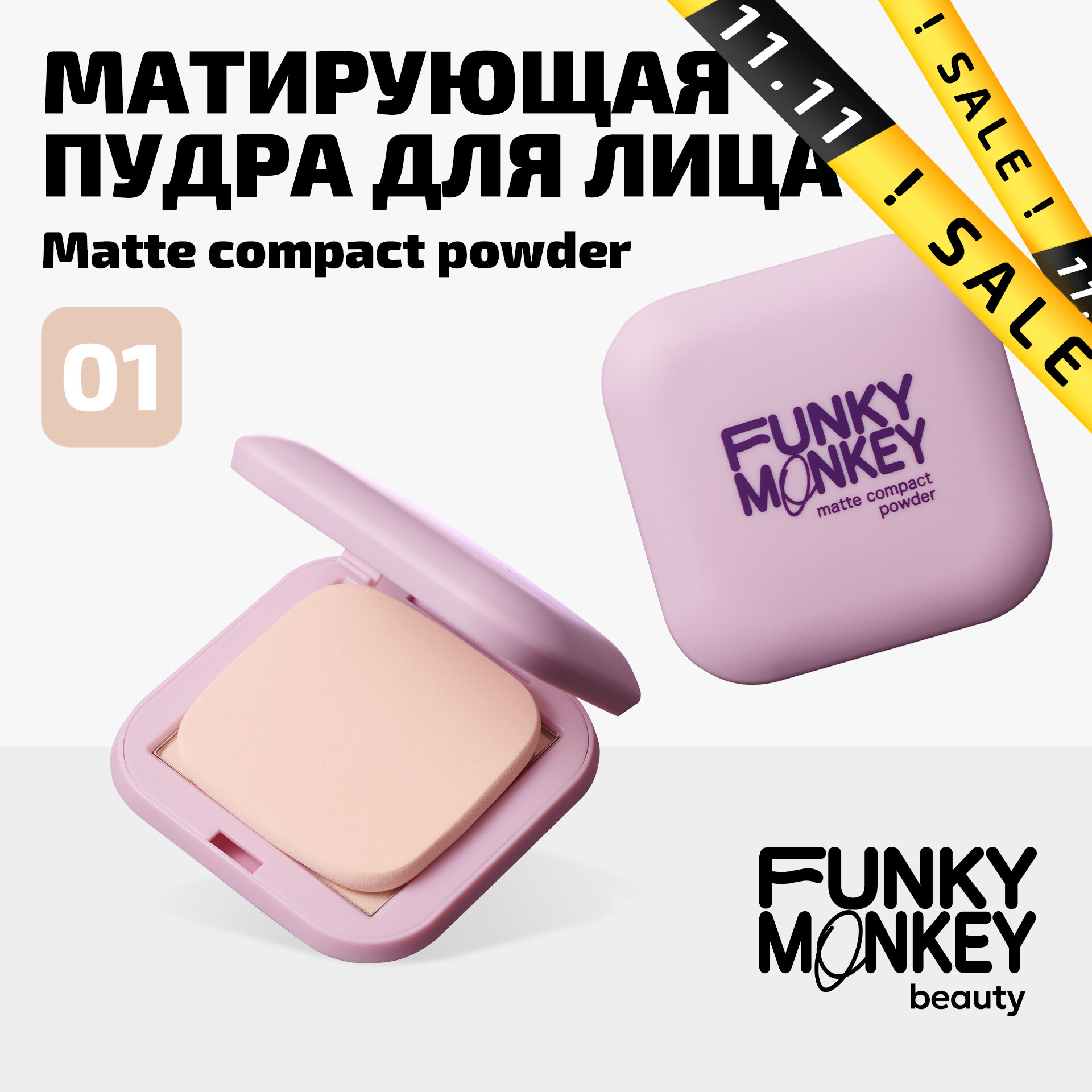 Купить Funky Monkey Пудра для лица компактная матирующая без талька Compact Powder тон 01