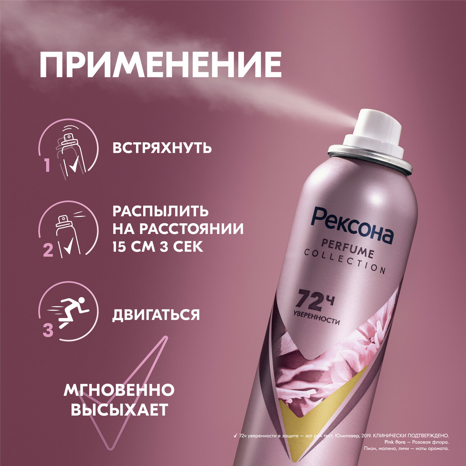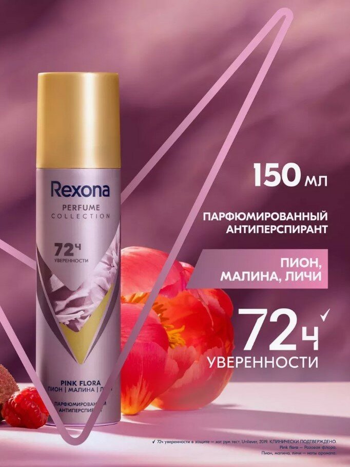 Дезодорант Rexona "Pink Flora", 72 часа уверенности в защите, аэрозоль, 150 мл интересное: