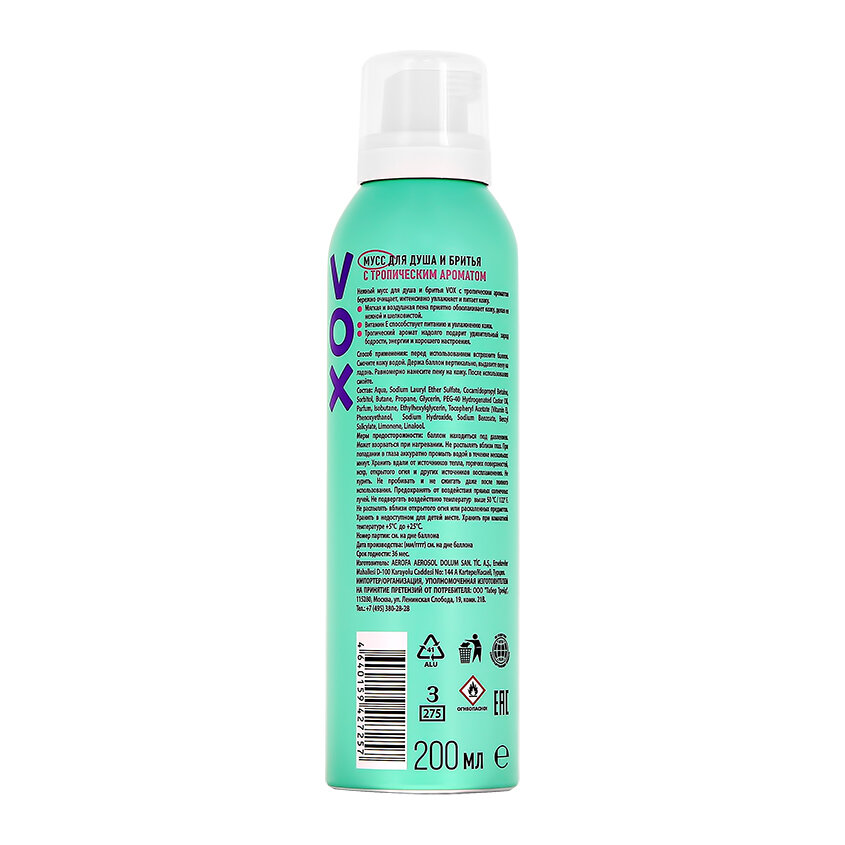 Мусс для душа и бритья VOX с тропическим ароматом, 200 мл интересное: