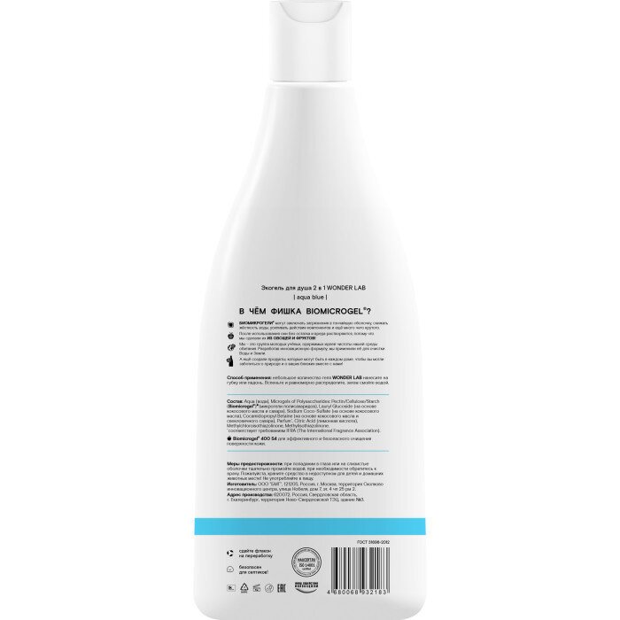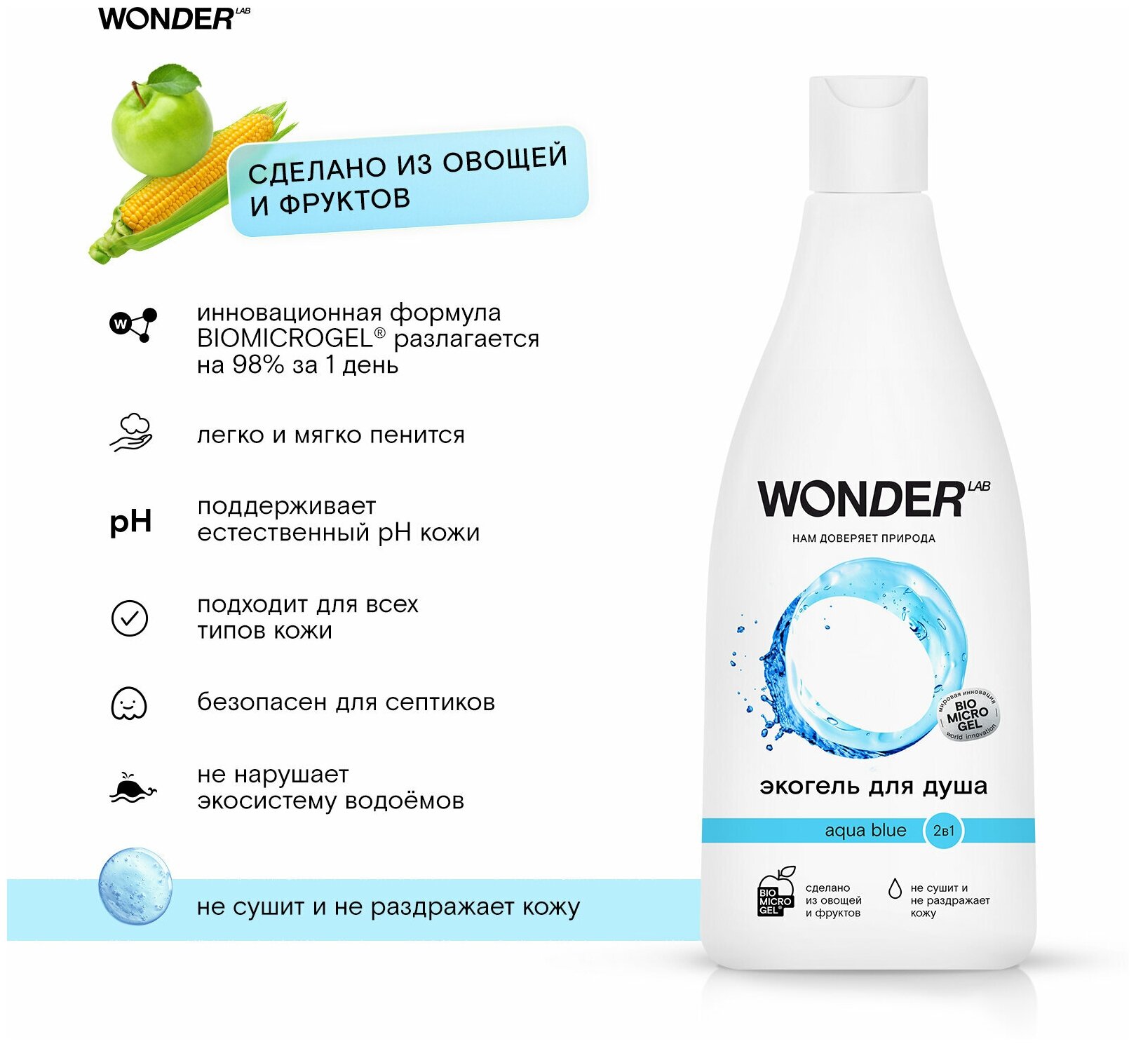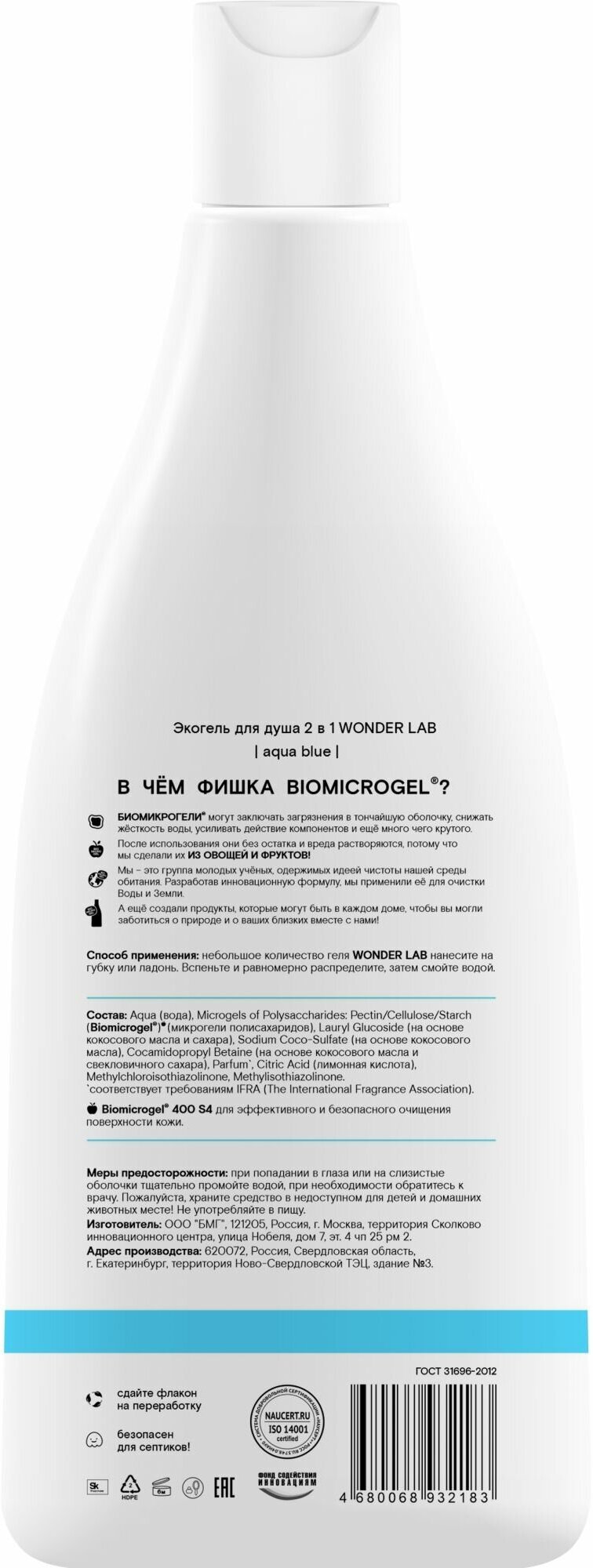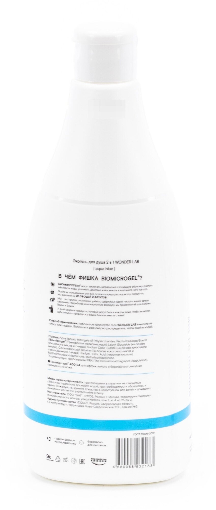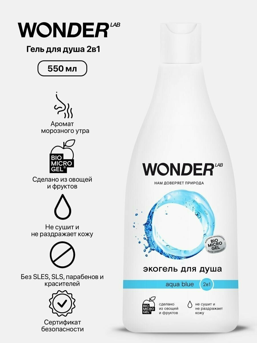 Гель для душа и шампунь WONDER LAB 2 в 1, Aqua blue, ЭКО, 550 мл, флакон (4680068932183)
