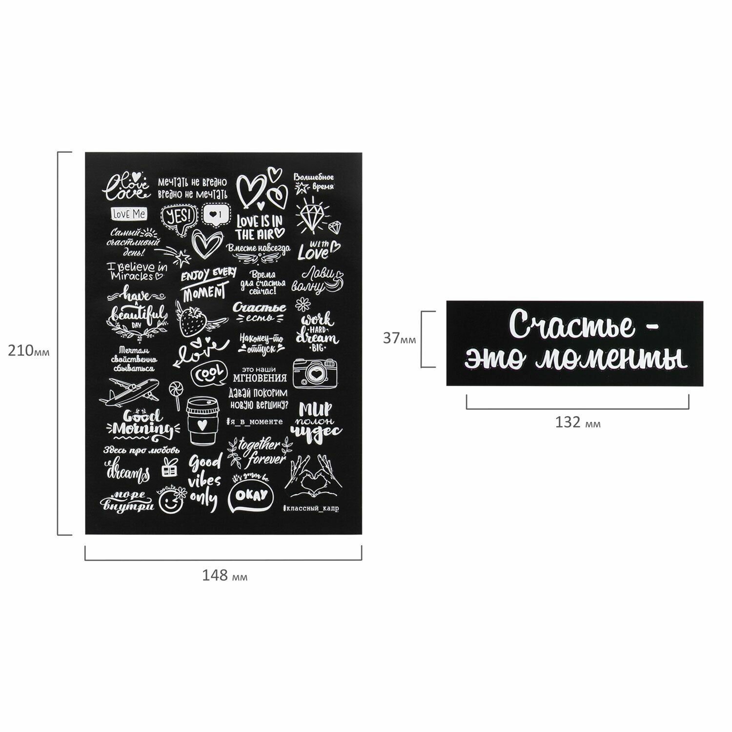 Фотоальбом детский семейный свадебный для фото с черными листами "Счастье – это моменты" 22х30 см, 24 черных листа, уголки, стикеры, ручка, клей, Brauberg, 391310