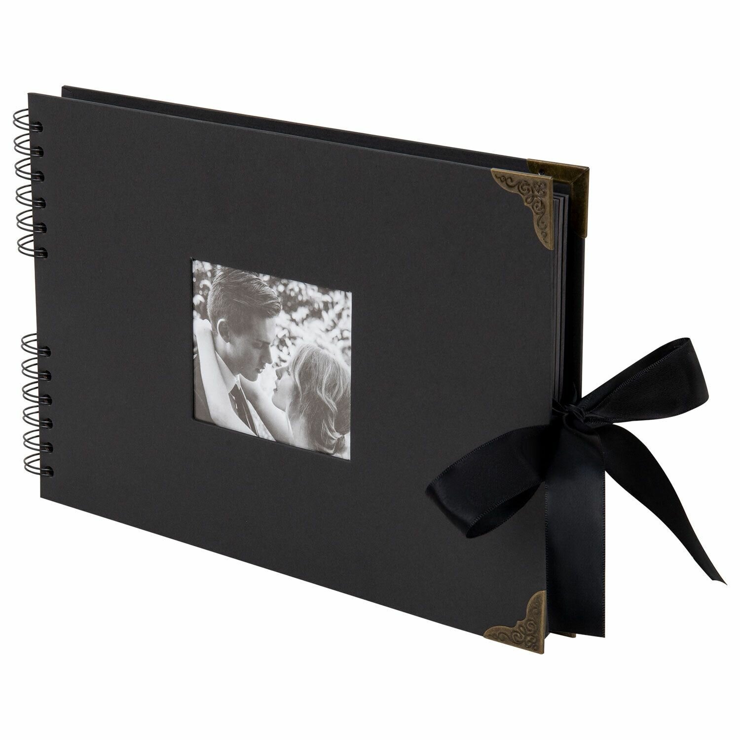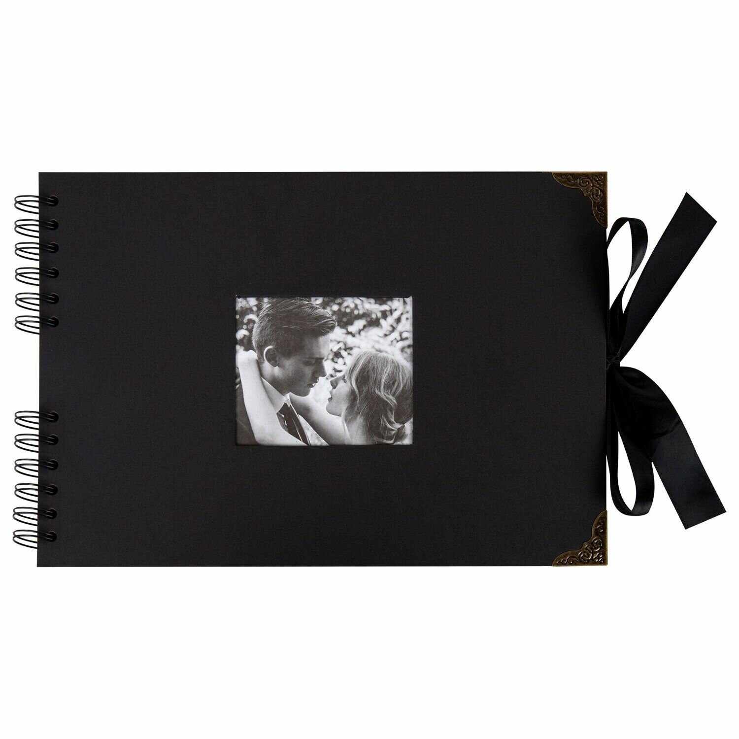 Купить Фотоальбом, альбом для фото 10x15 семейный детский большой, для новорожденных, подарочный набор 21х30 см 40 черных листов, Brauberg Black, 880654