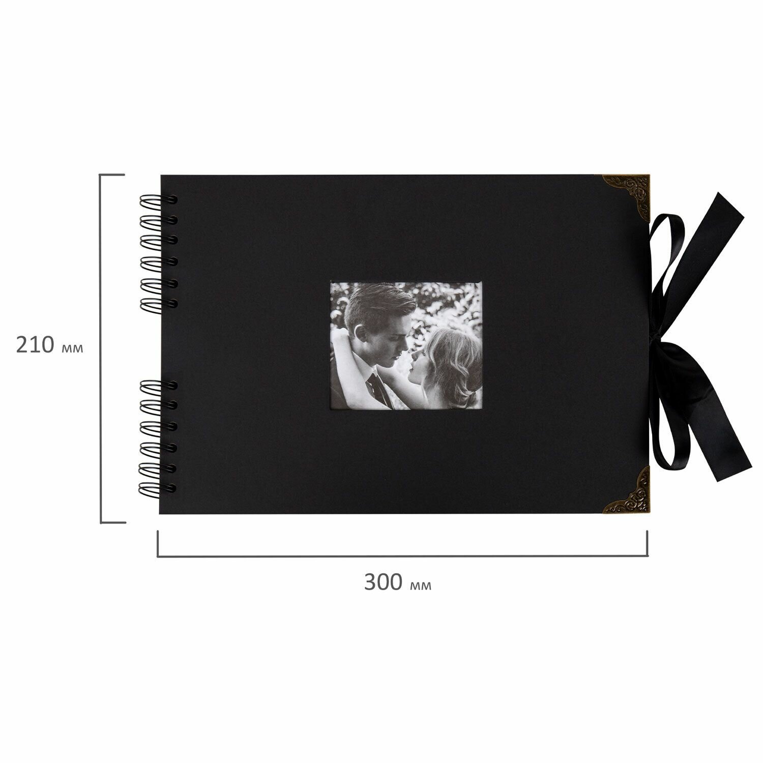 Фотоальбом, альбом для фото 10x15 семейный детский большой, для новорожденных, подарочный набор 30х32 см 48 черных листов, Brauberg Black Line, 880650