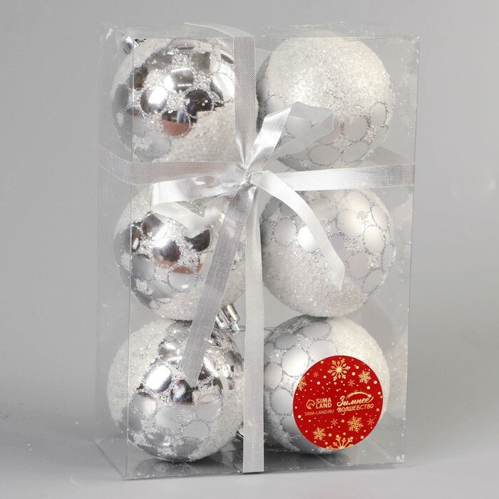 Купить Набор шаров пластик d-7 см, 6 шт "Сюрприз" серебро 9510138