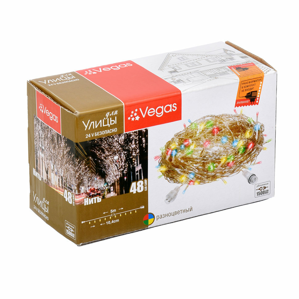 СохранитьЭлектрогирлянда уличная "Нить" VEGAS 48 разноцв.LED ламп, прозр.провод,5м. 24V (без блока питания) интересное: