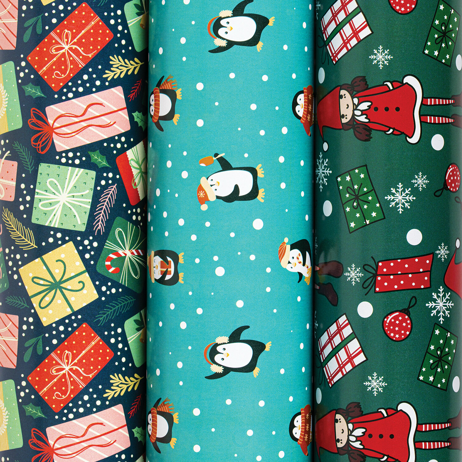 Бумага упаковочная новогодняя набор 3 шт, "Snow Fun", 70х100 см, 3 дизайна, золотая сказка, 592060