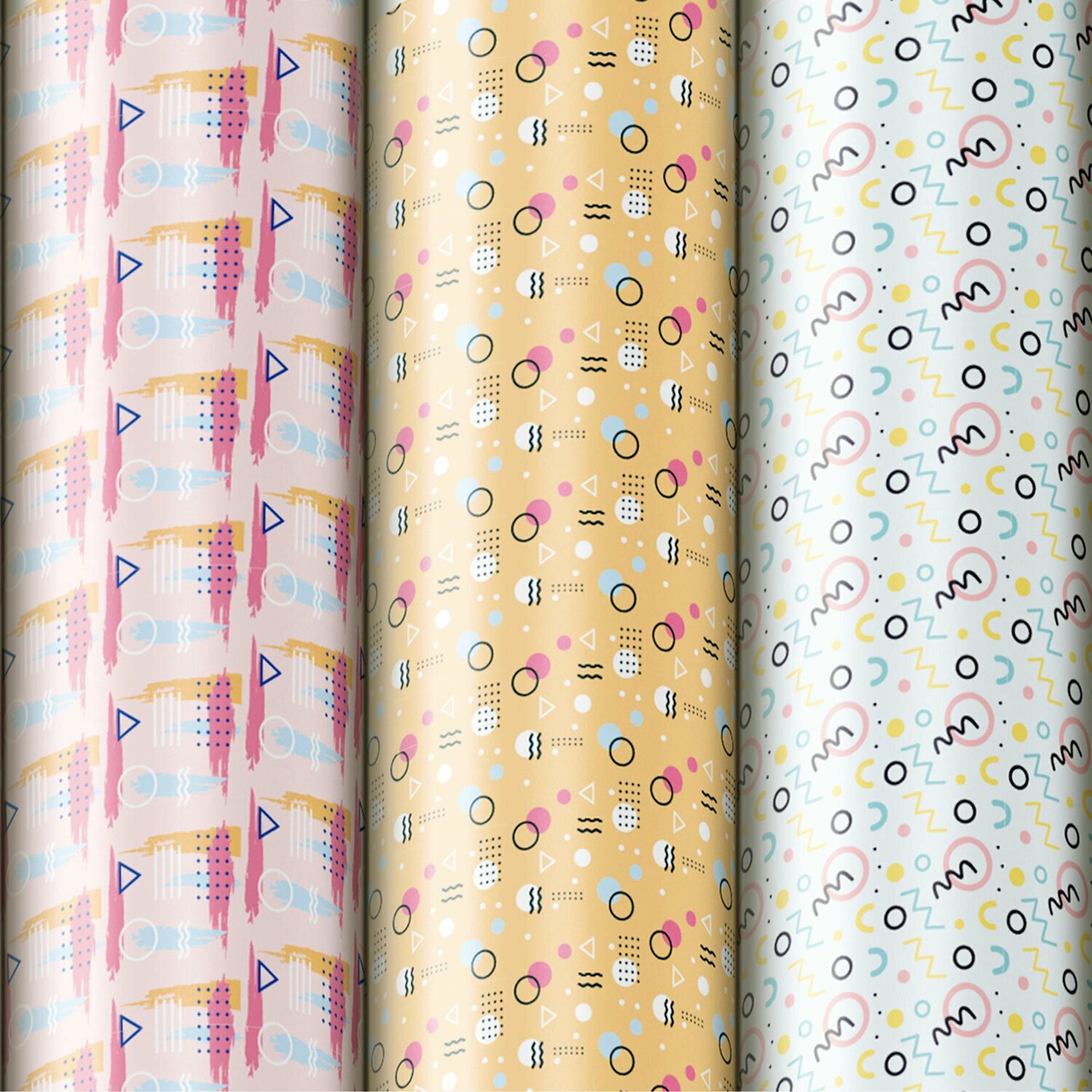 Упаковочная бумага 70х100 см для мелованная крафтовая, набор 3 штуки, 3 дизайна, подарочная упаковка, Золотая Сказка, Memphis, 592067