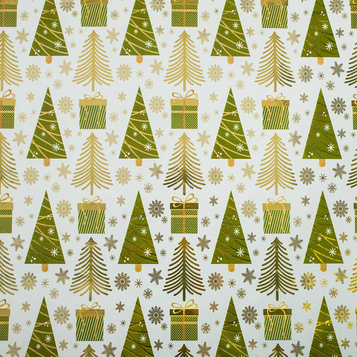 Бумага упаковочная подарочная крафт С эффектами BIG SIZE новогодняя "Green Trees", 0,7х5 м, золотая сказка, 591950