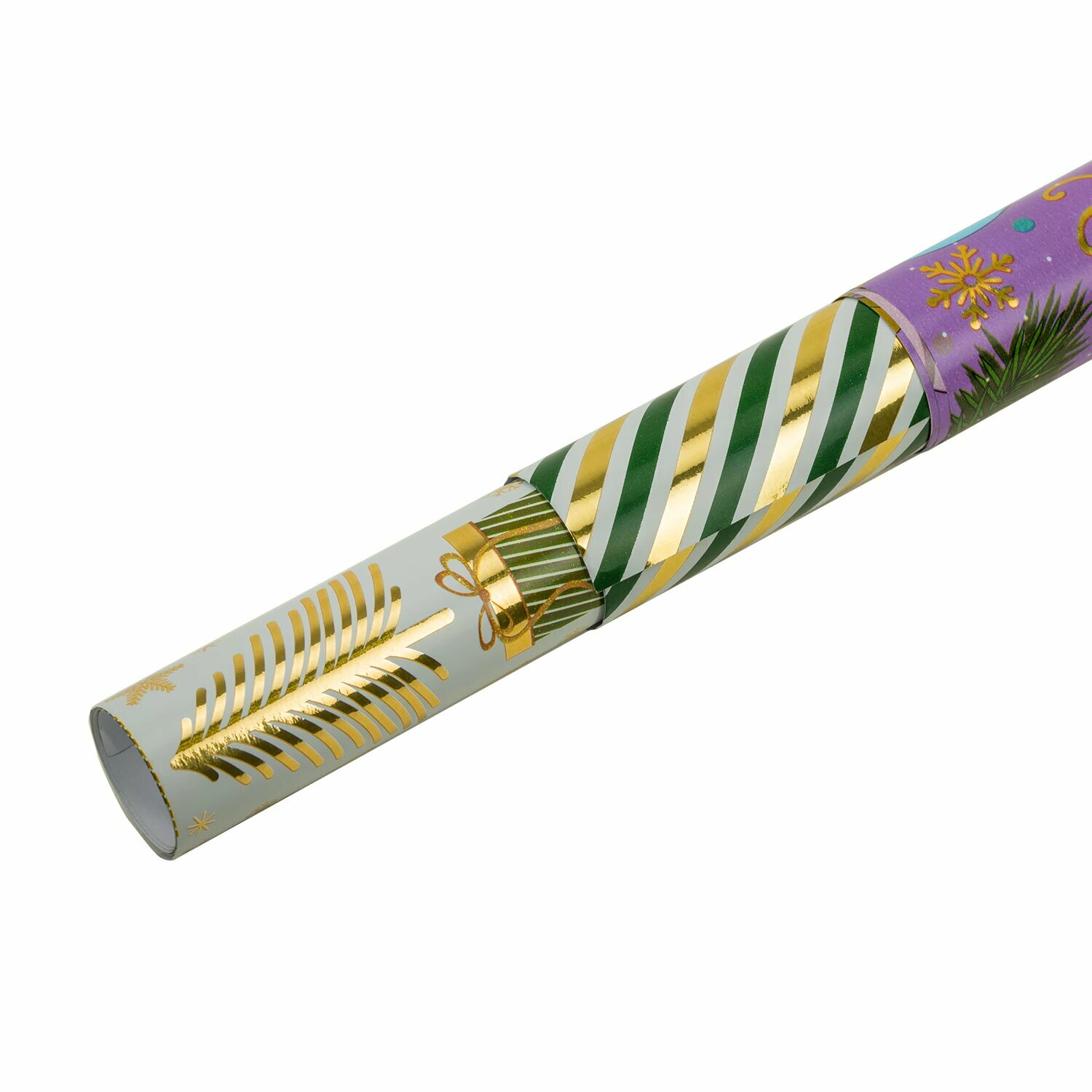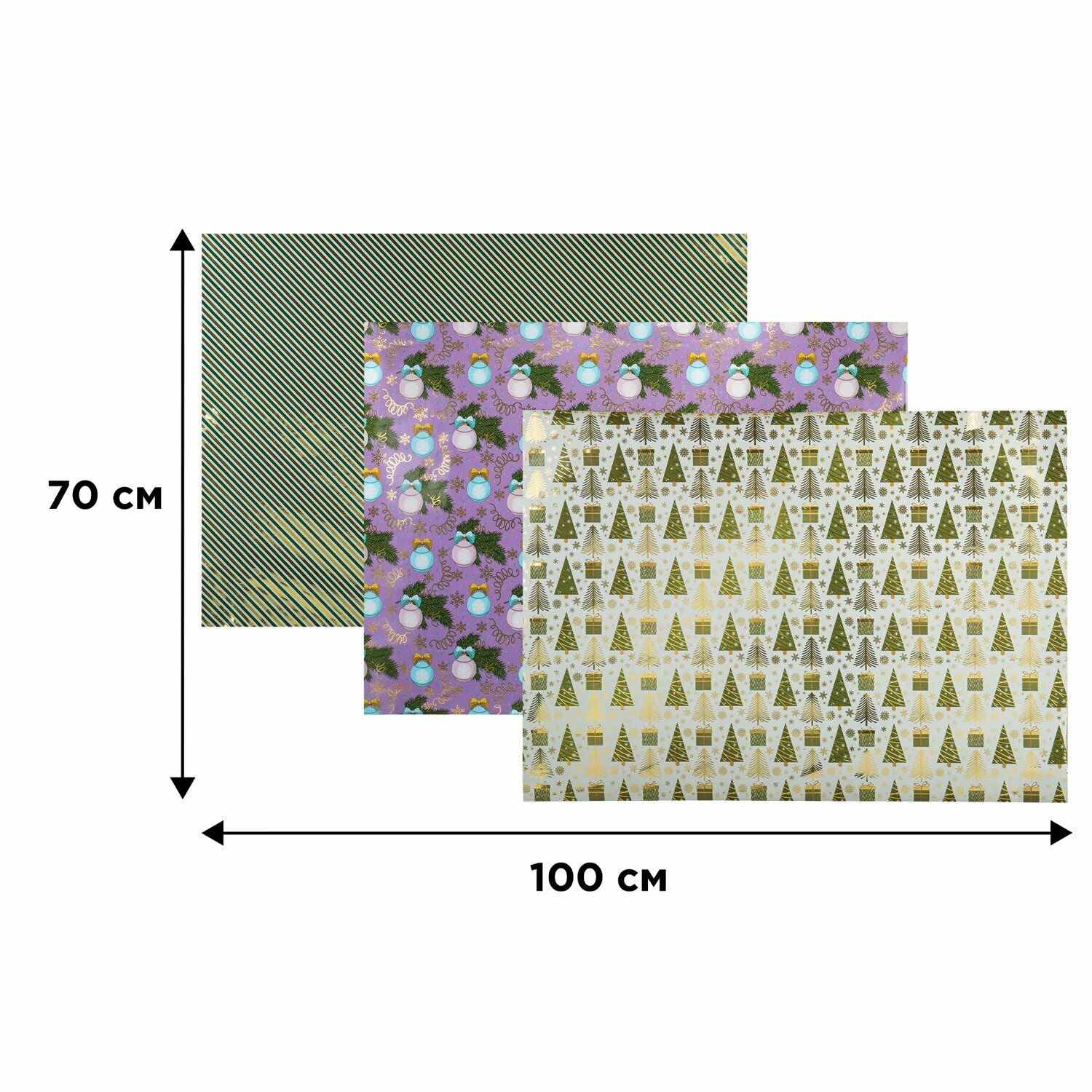 Бумага упаковочная новогодняя набор 3 шт, "Green Collection", 70х100 см, 3 дизайна, золотая сказка, 592061