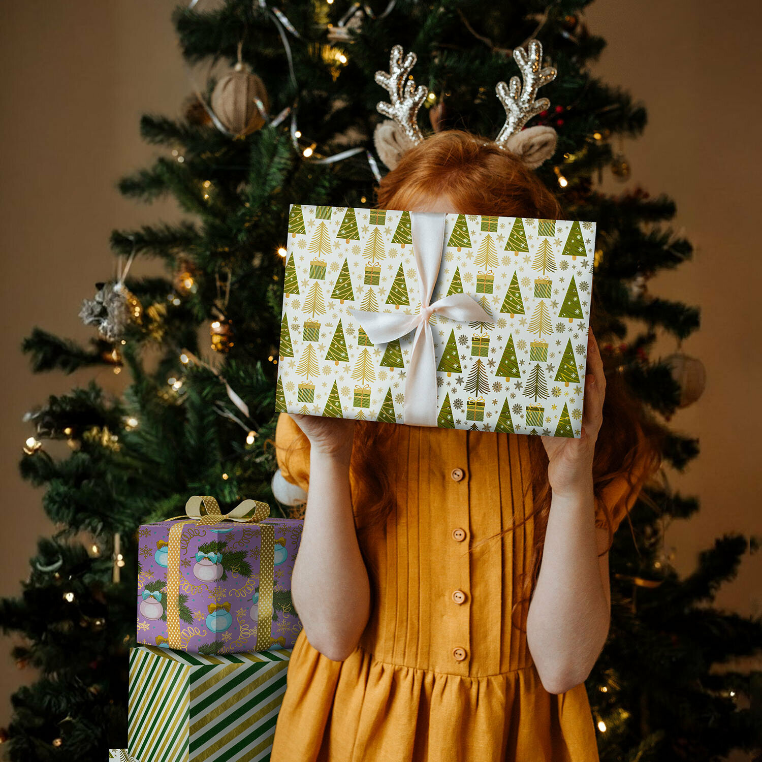 Бумага упаковочная подарочная крафт BIG SIZE новогодняя "Holiday Trees", 0.7х10 м, золотая сказка, 591946
