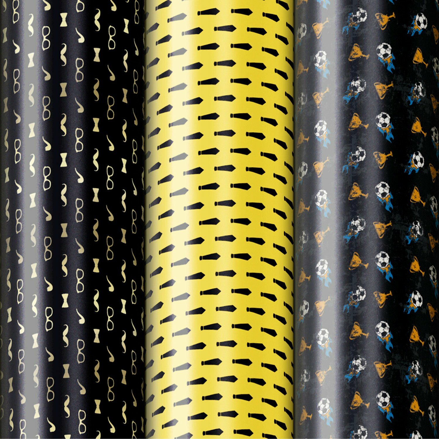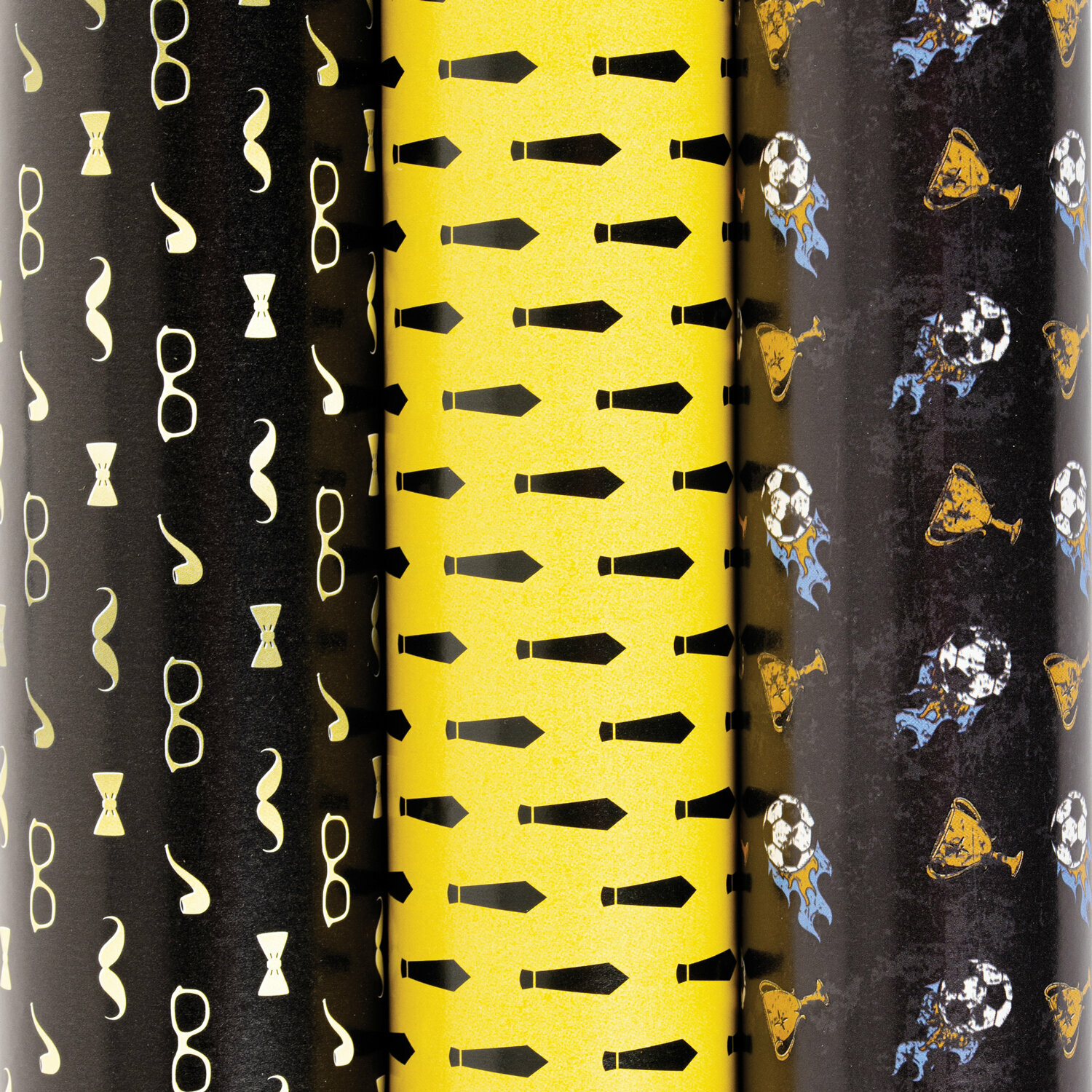 Упаковочная бумага 70х100 см для подарков мелованная, набор 3 штуки, 3 дизайна, подарочная упаковка, Золотая Сказка, Man Style, 592064