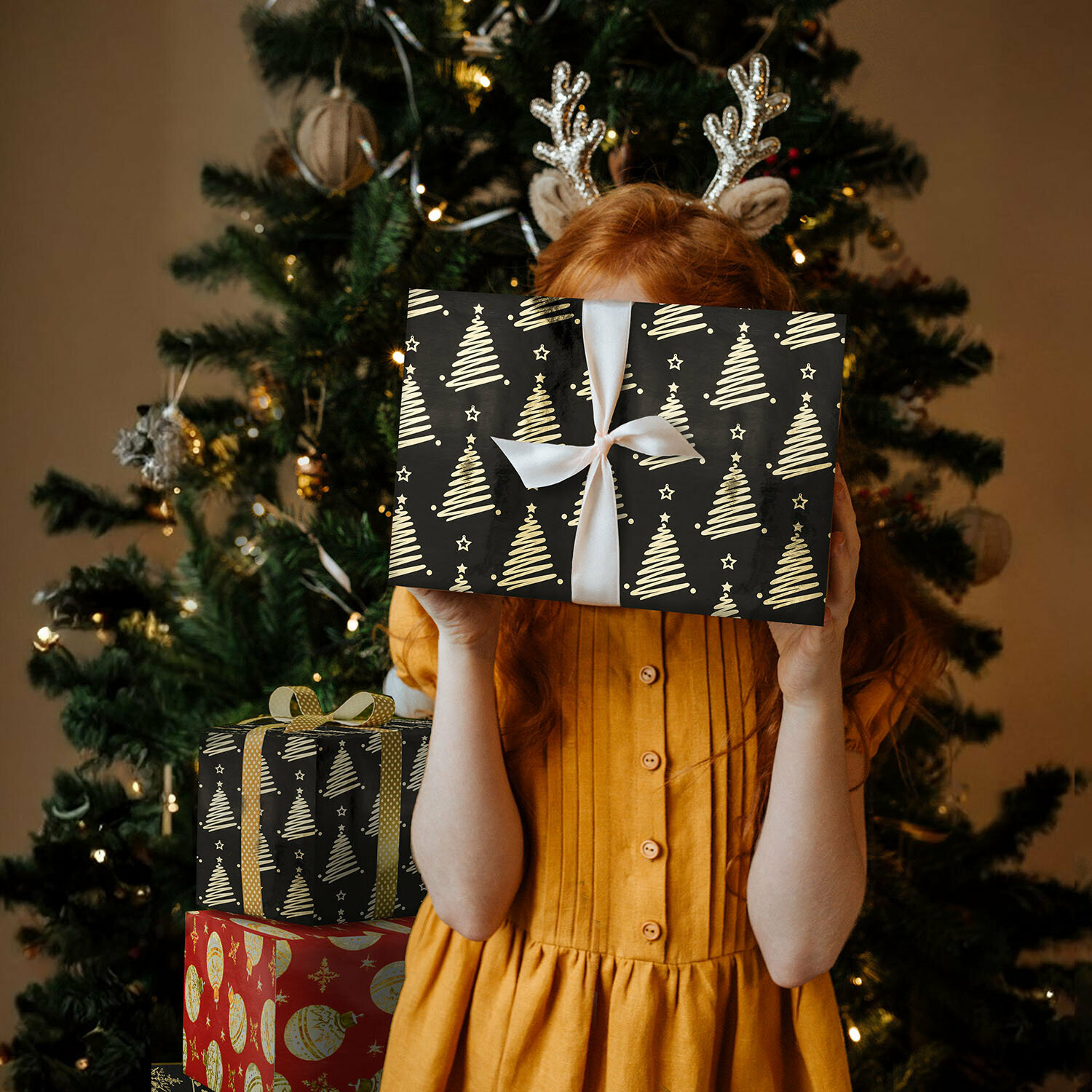 Бумага упаковочная подарочная крафт BIG SIZE новогодняя "Holiday Trees", 0.7х10 м, золотая сказка, 591946